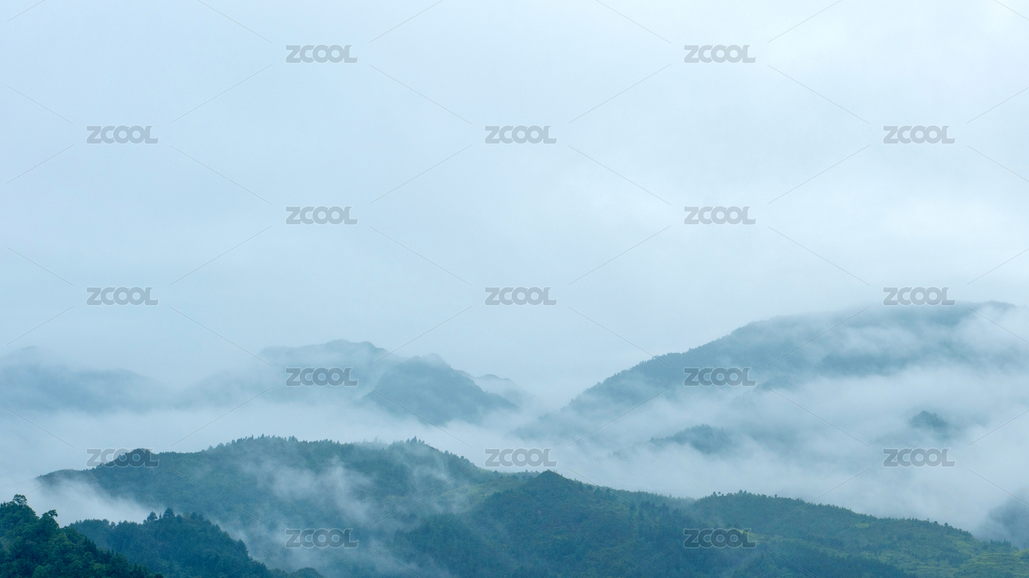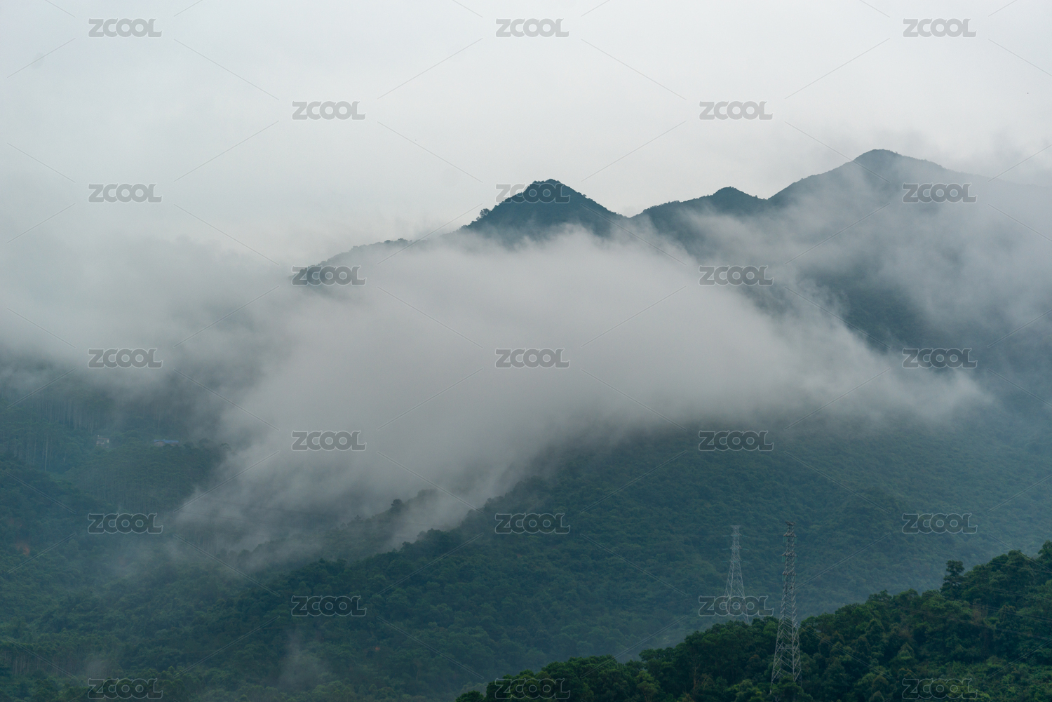 雨后云雾缭绕的山脉,广东省阳春市区东侧