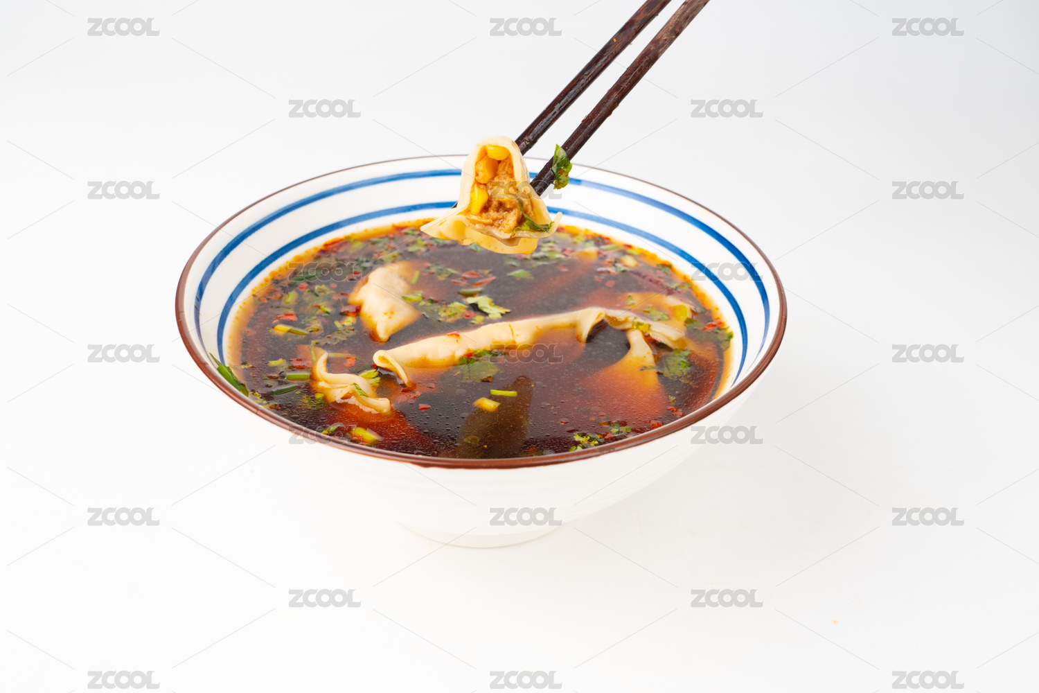 白背景上一碗红油抄手云吞