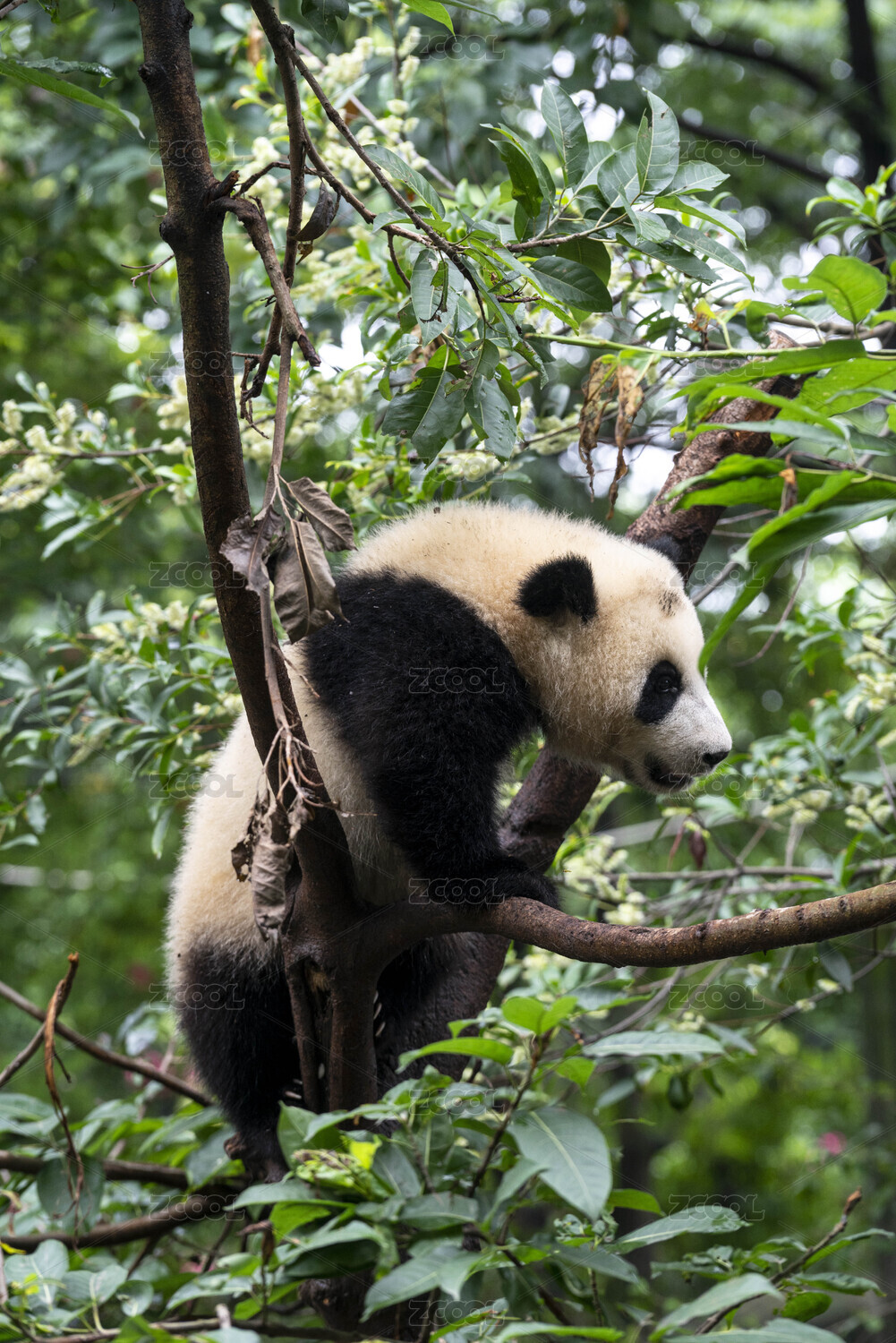 成都大熊猫繁育研究基地正在爬树幼年大熊猫