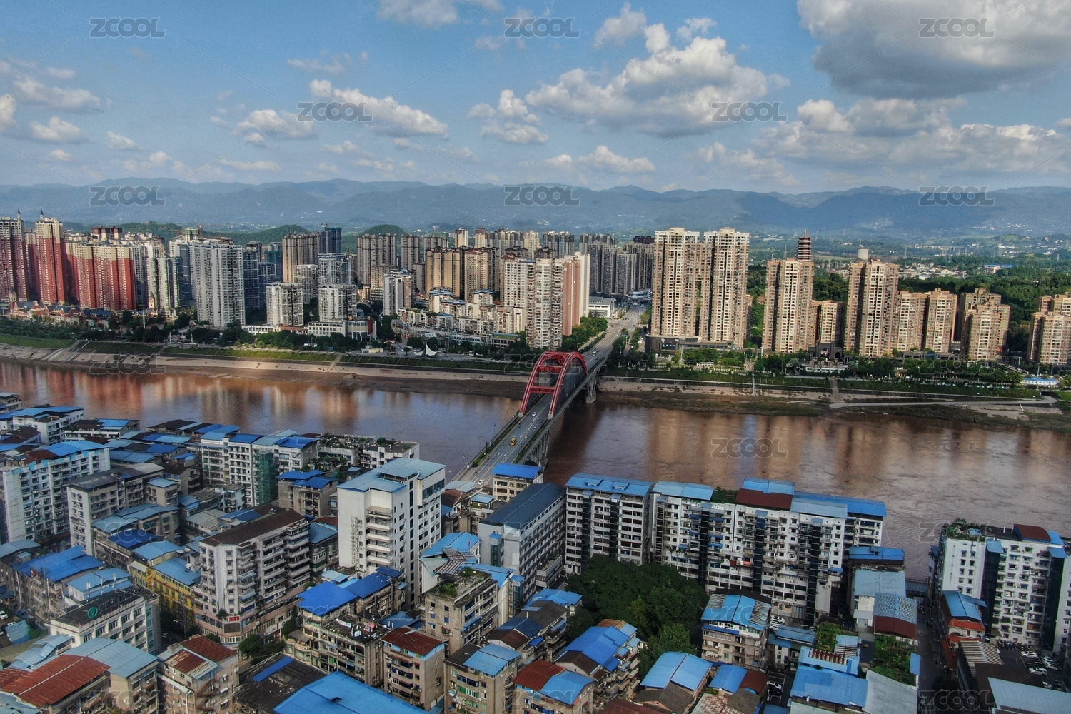 四川宜宾蓝天白云蜿蜒长江城市景观
