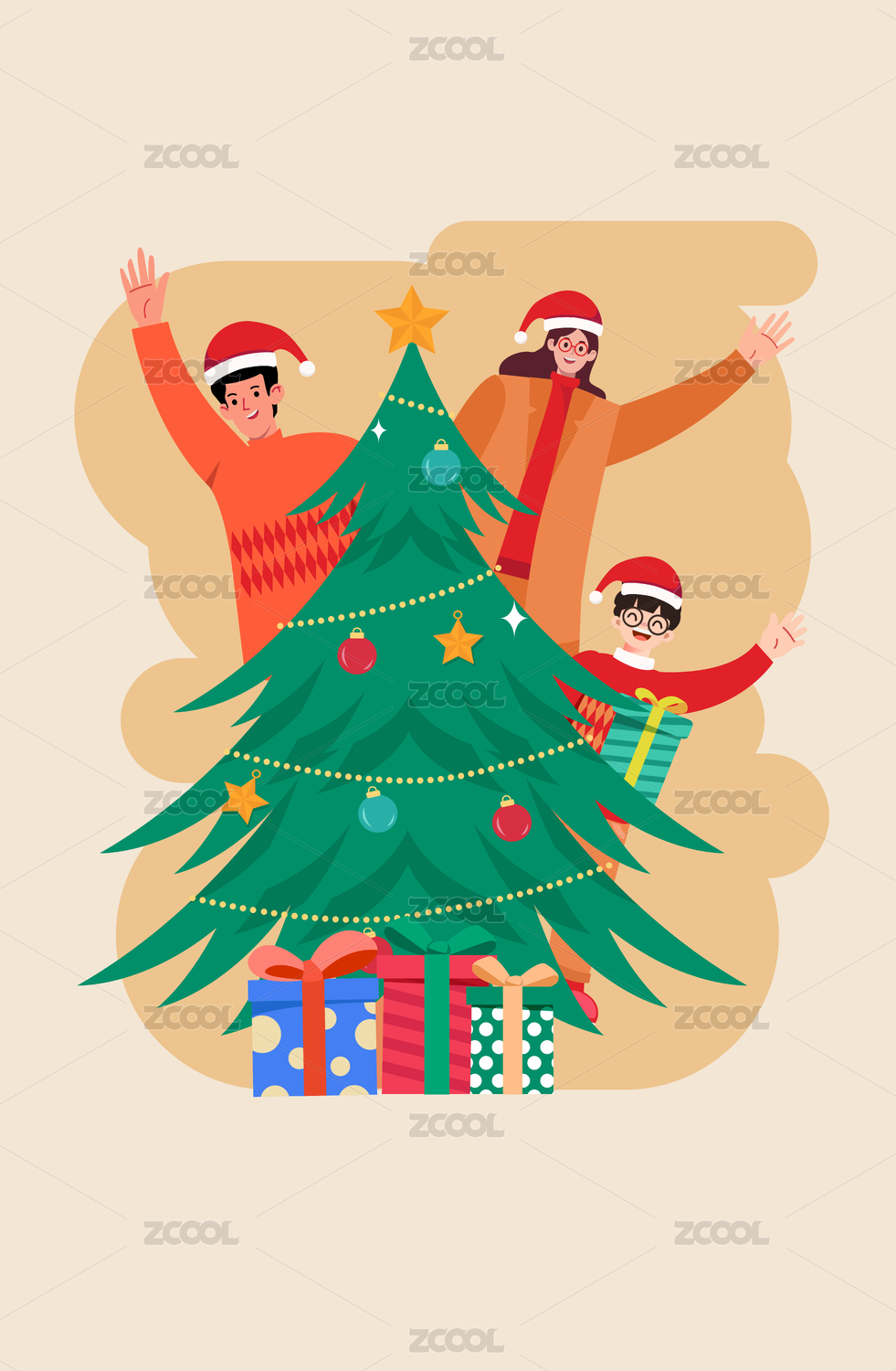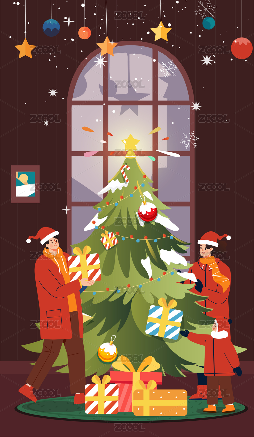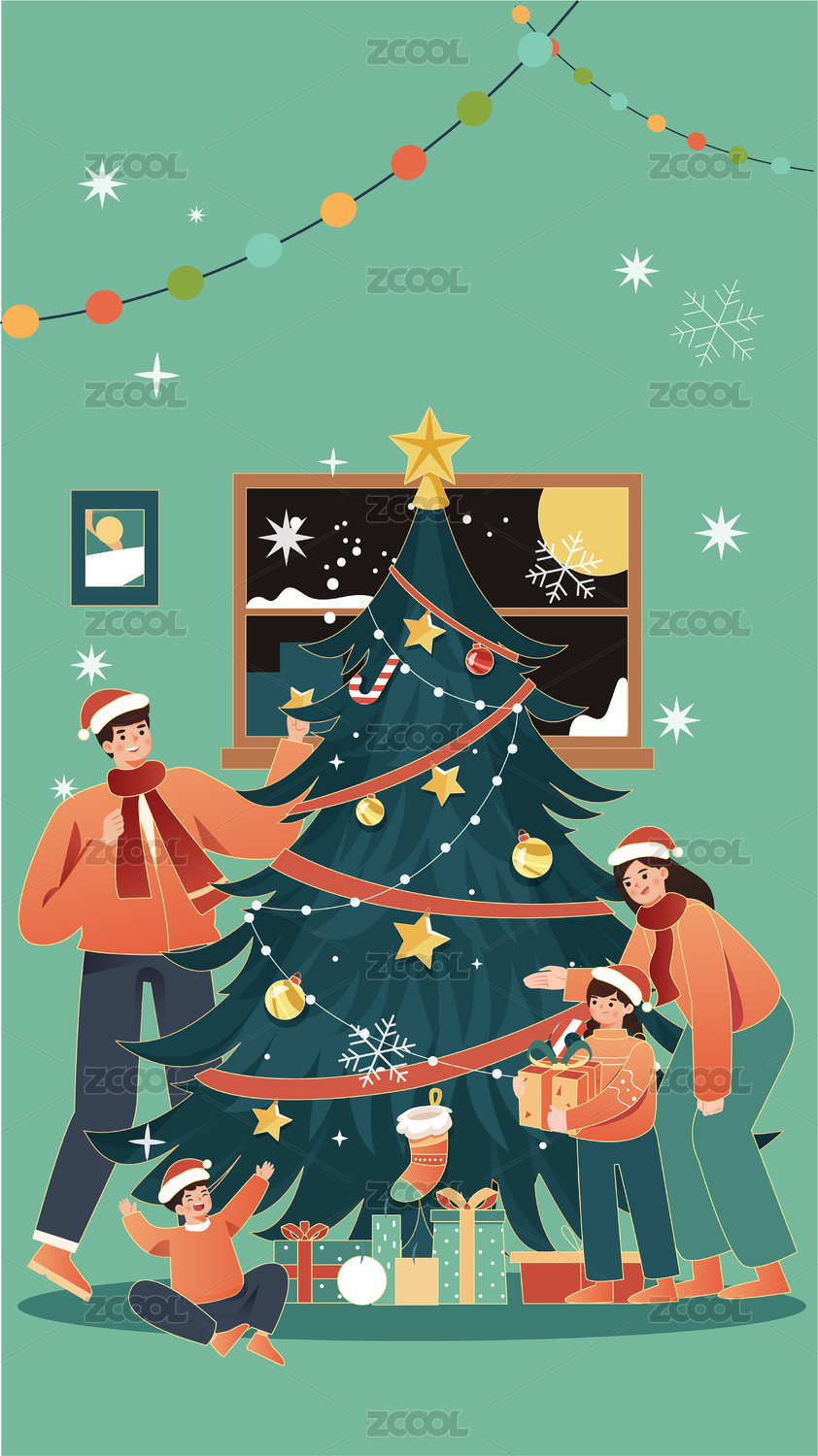 一家人的圣诞节插画竖版