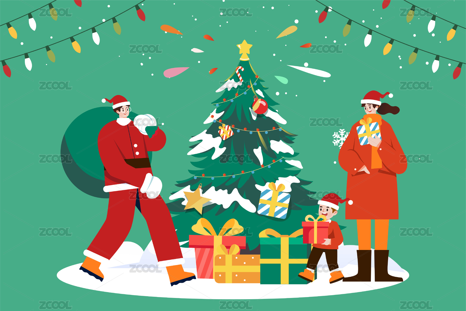 一家人过圣诞节插画