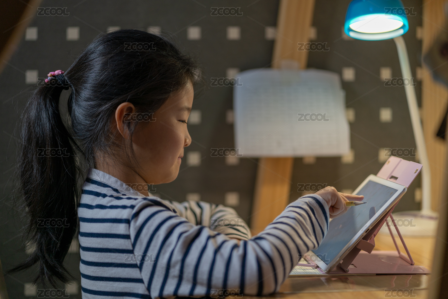 新型肺炎疫情期间在家通过网络上课的小女孩