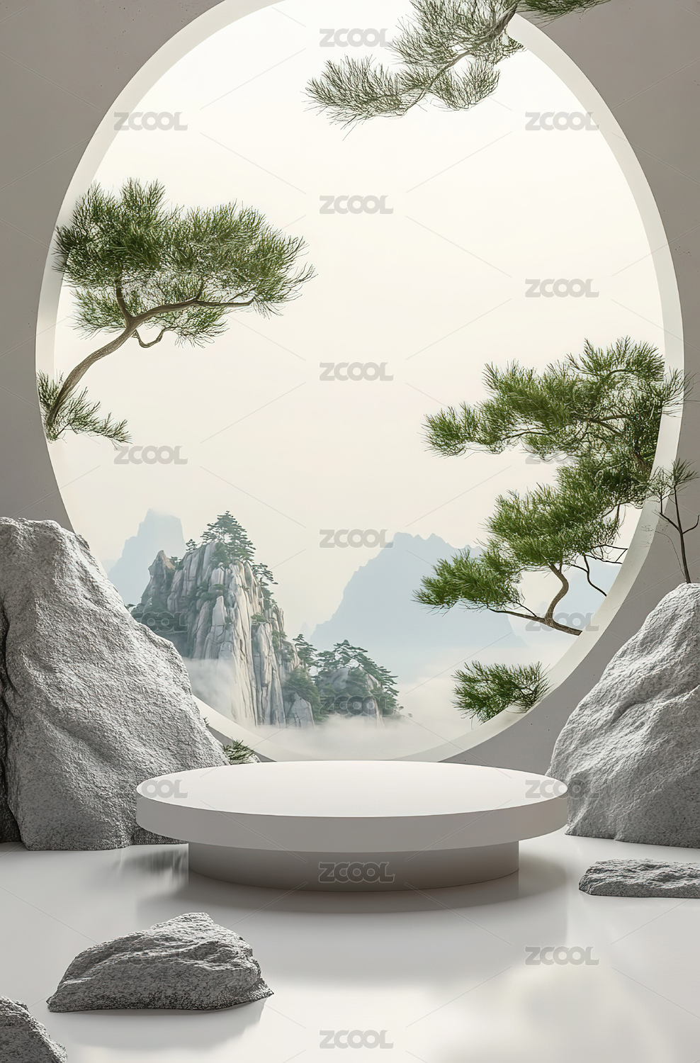 松树,装饰,国风,植物,极简,电商,底座,展台,展览,3D