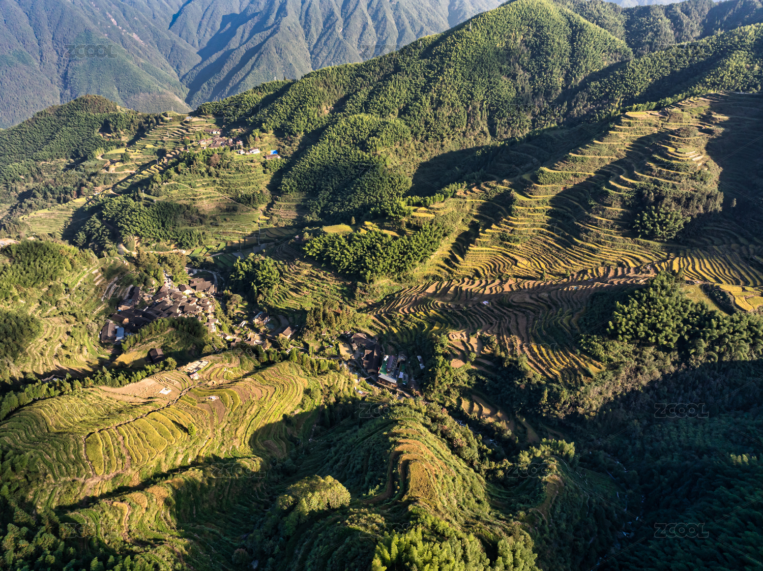 云和白银谷景区坑根古村落山间梯田风光航拍