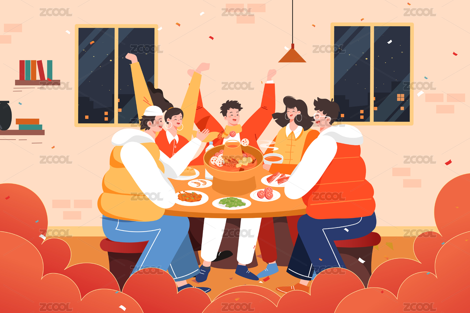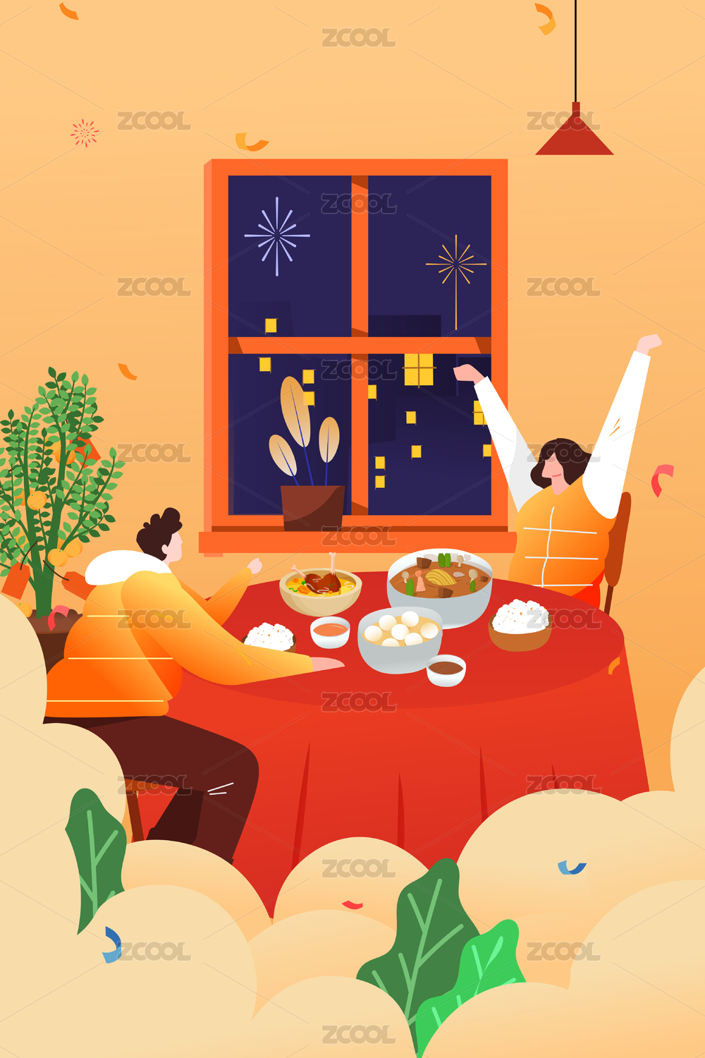 新年春节除夕年夜饭插画