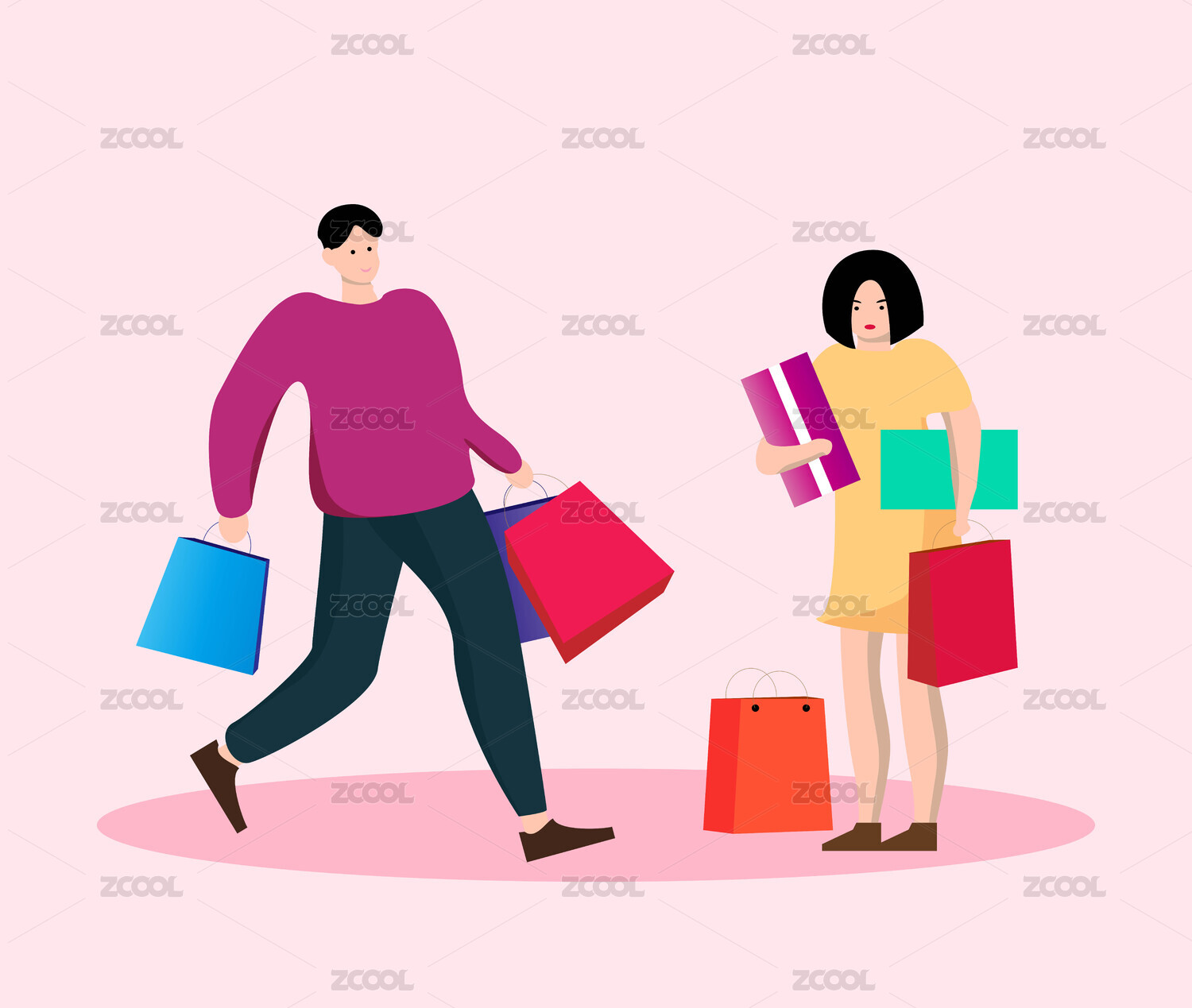 双十一双十二购物节扁平渐变购物小人白底海报插画元素