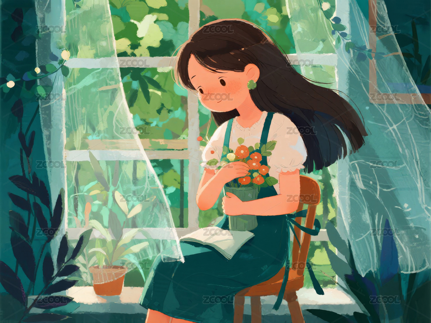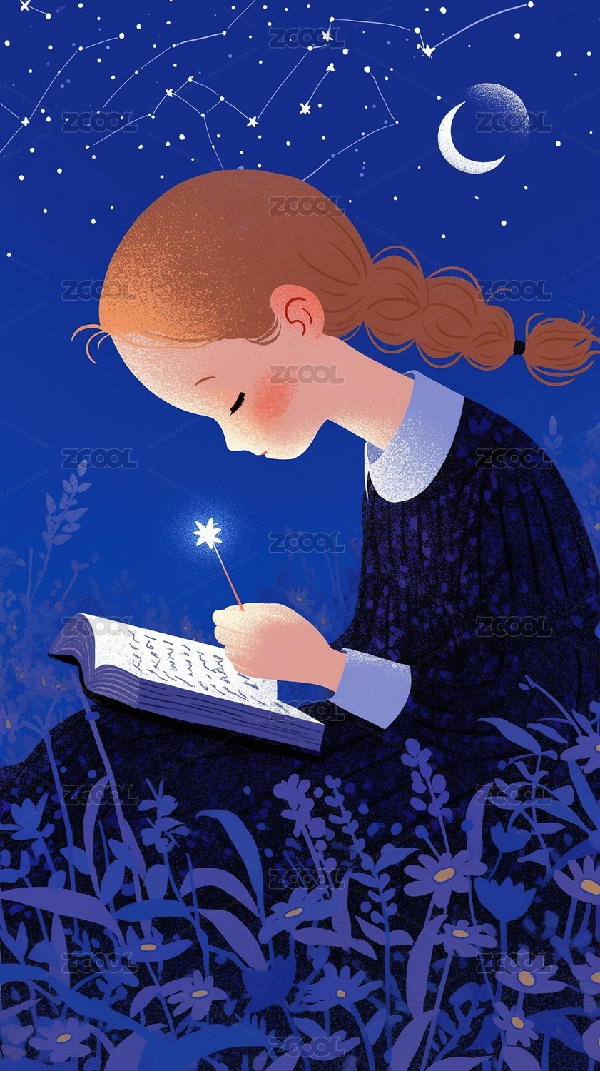 扎马尾辫的女孩带的项链在深夜中发光引来了森林中的动物们围观
