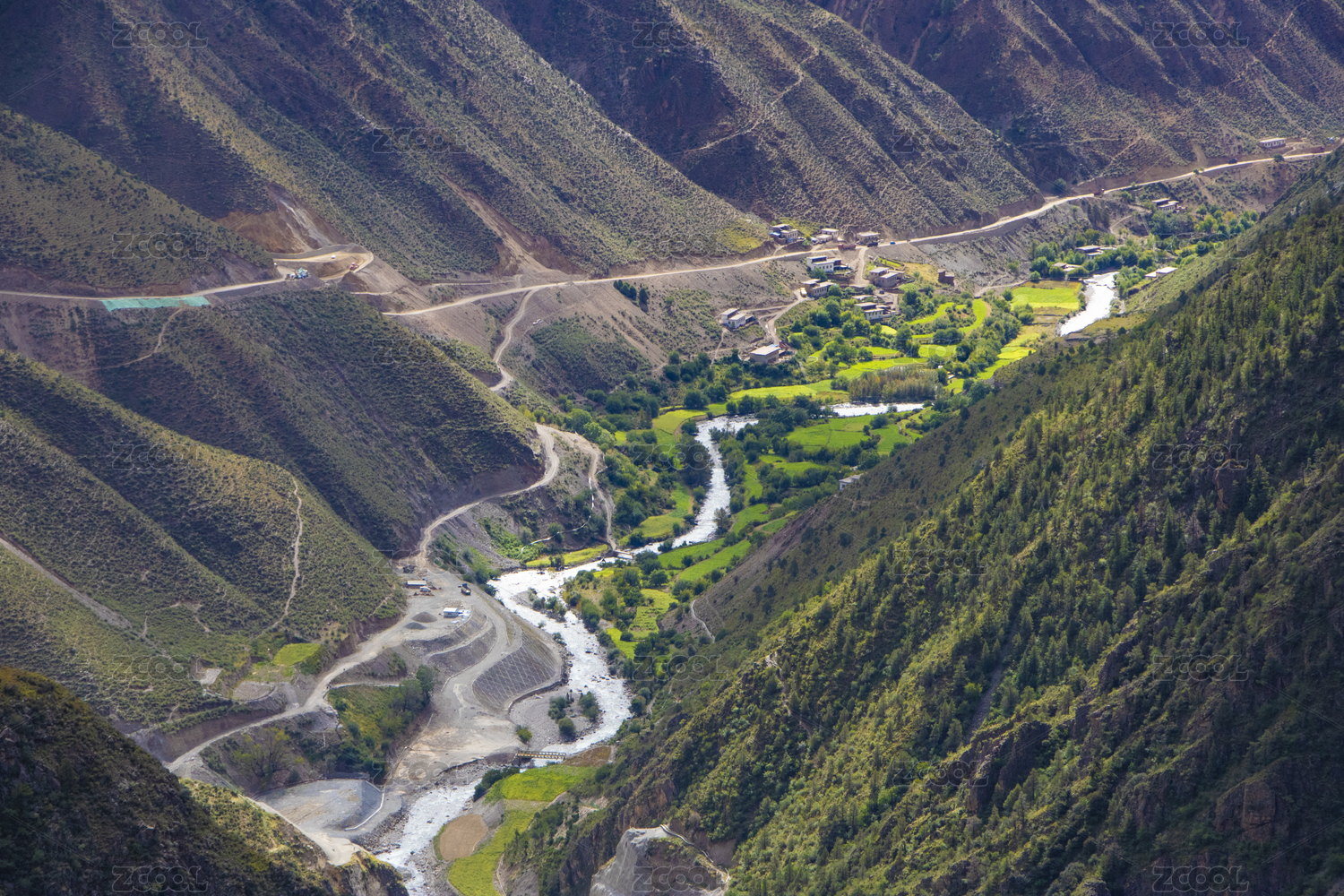 中建在峡谷中山坡上的藏区小康新农村和梯田