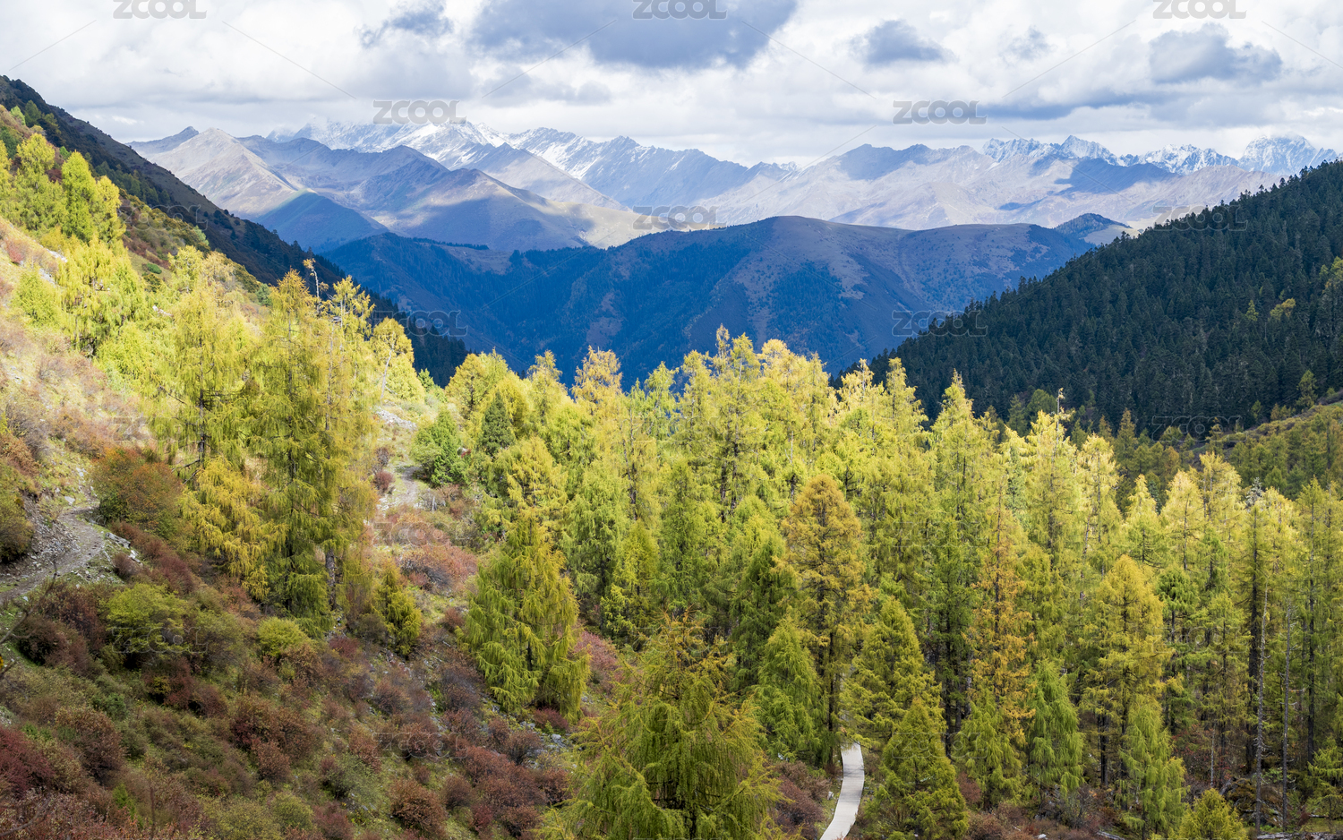 川西玛嘉沟彩林雪山秋景