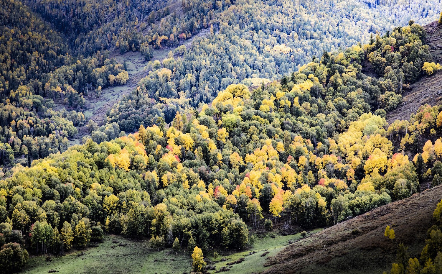 北山,互助,青海,秋天,秋季,树木,树林,森林,落叶,黄叶
