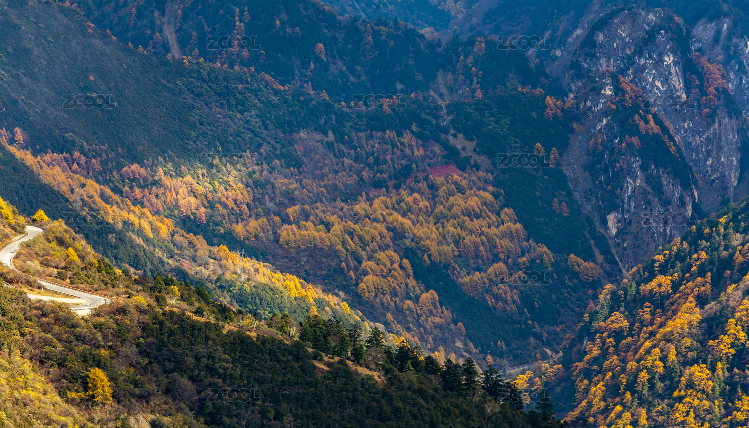 中国四川阿坝小金县四姑娘山镇峡谷彩林秋色