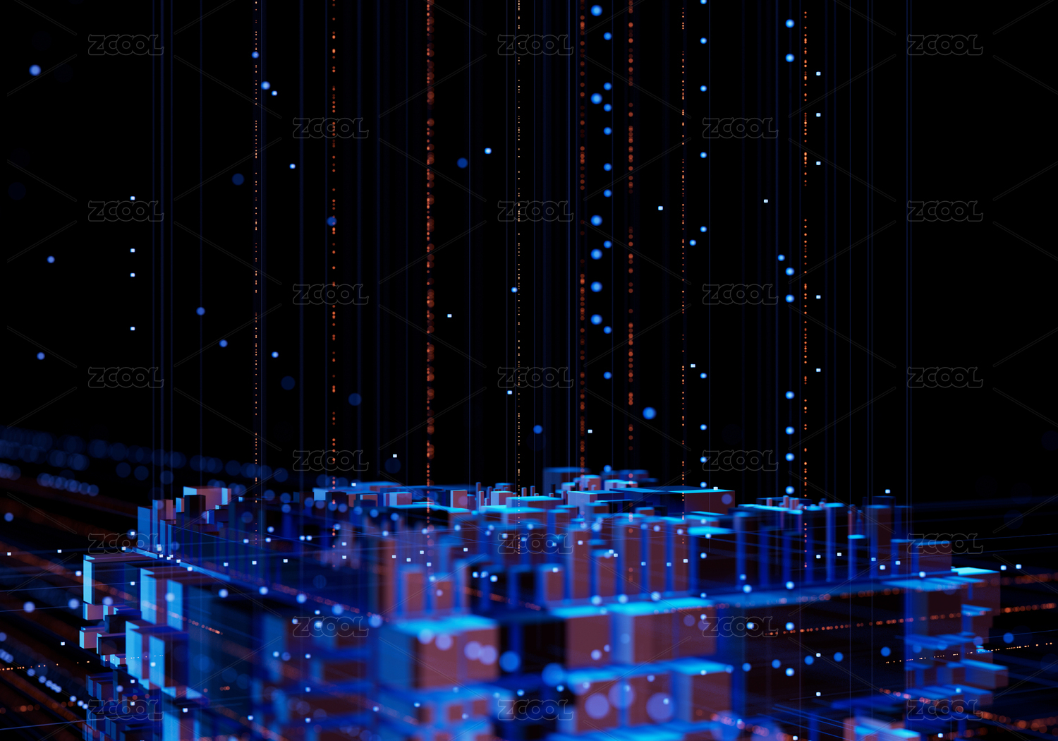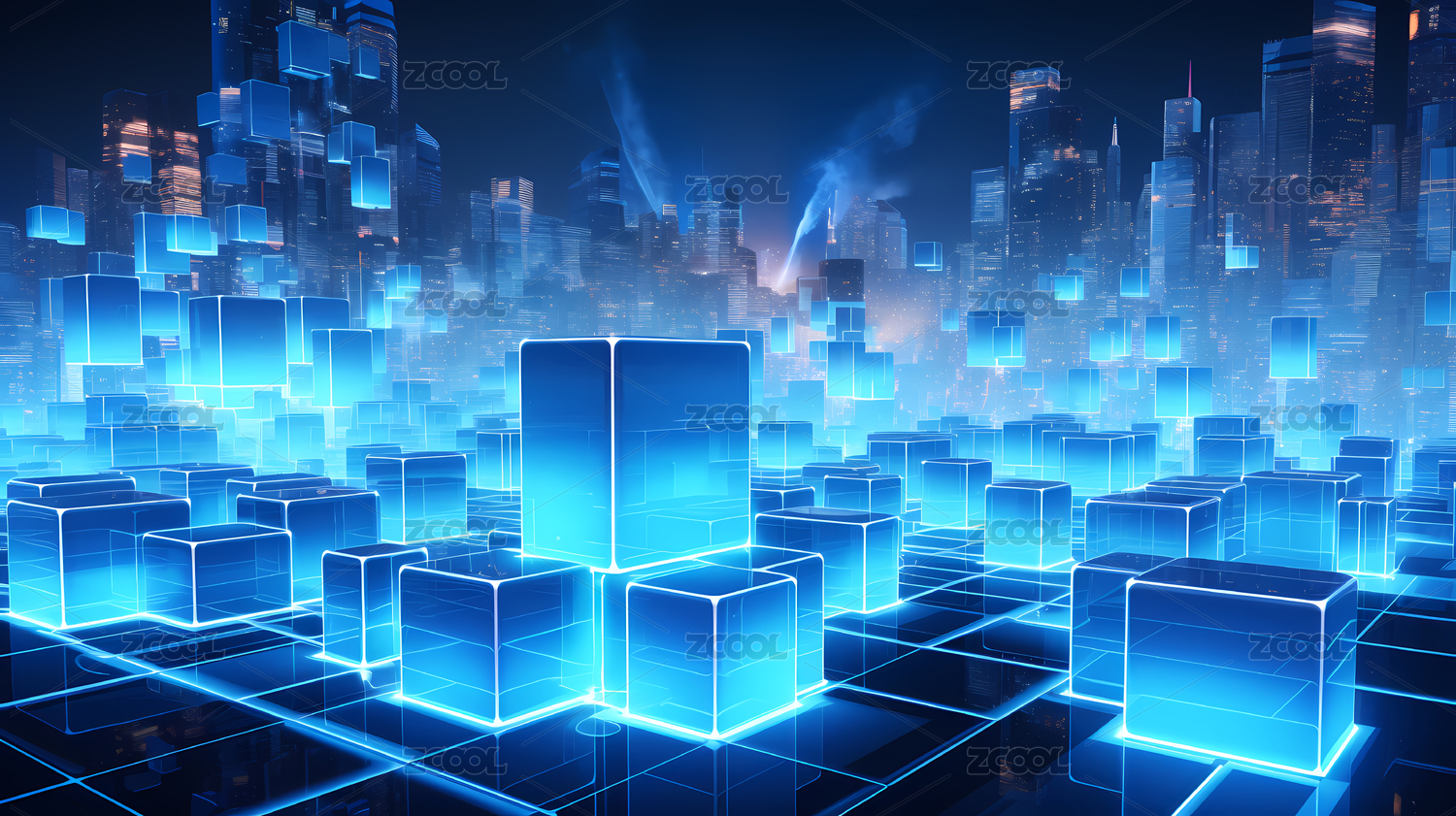 立方体组成的数据阵列,代表着互联网数据的存储与传输,未来信息科技与智能时代