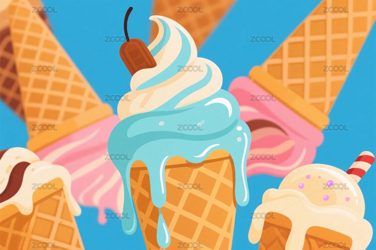 夏日清凉各款冰淇淋美食背景