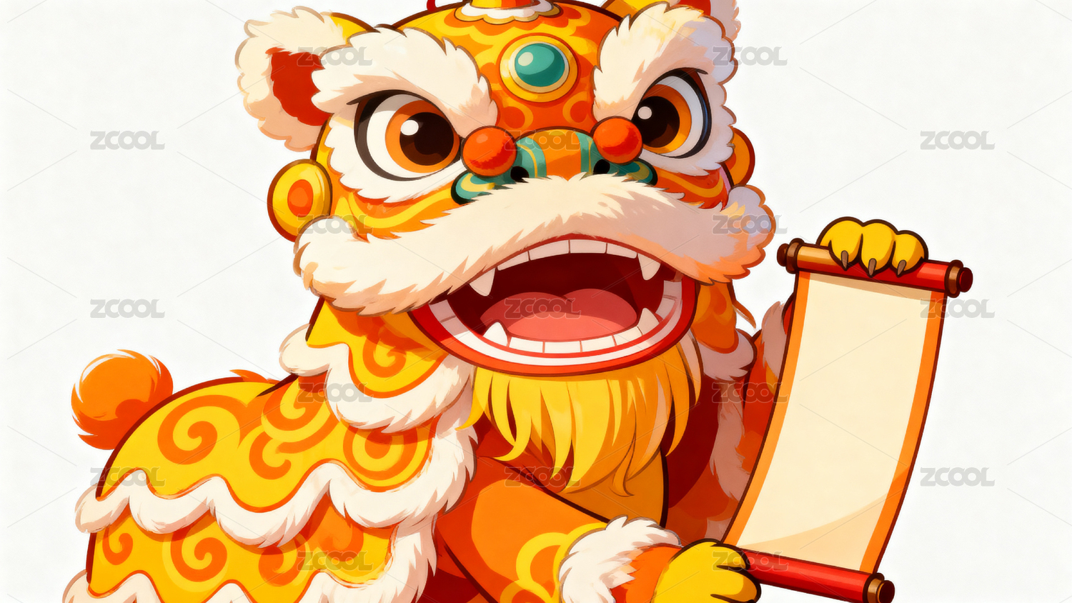 春节舞狮节日插画庆祝虎年新年国潮活动海报