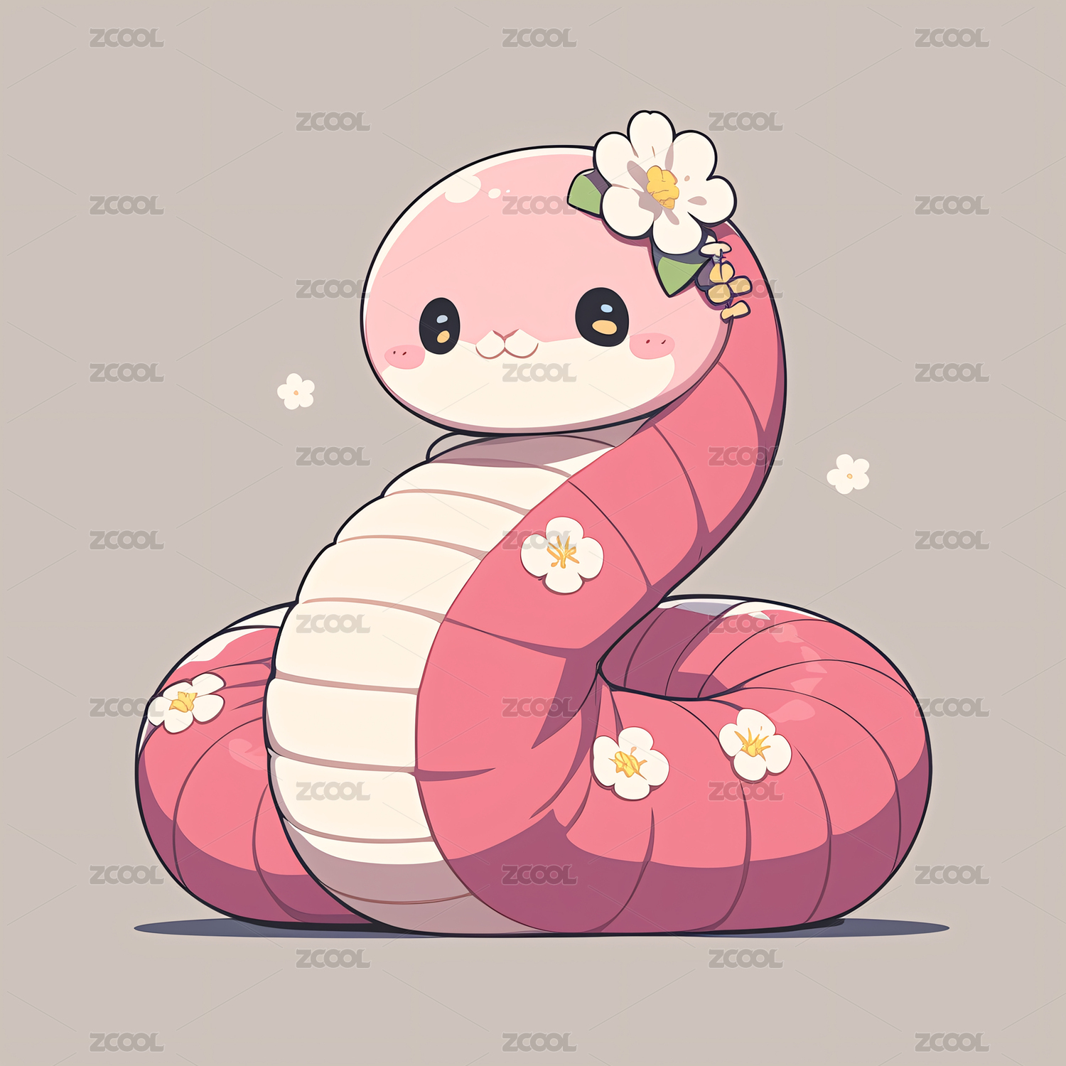清新明亮一条可爱弯曲盘绕的蛇插画绘画