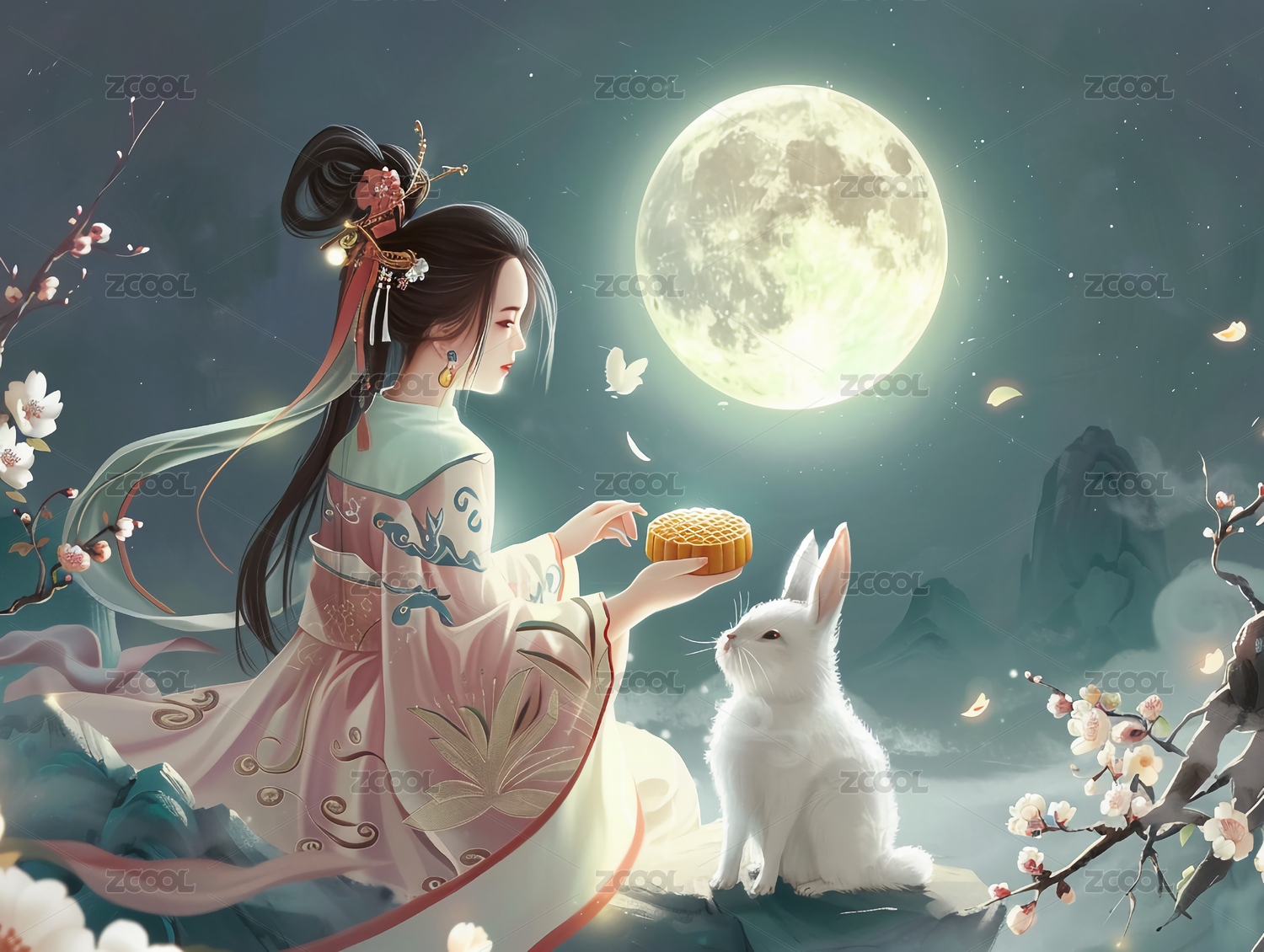 嫦娥,玉兔,中秋,月饼,桂花,月亮,AIGC202403