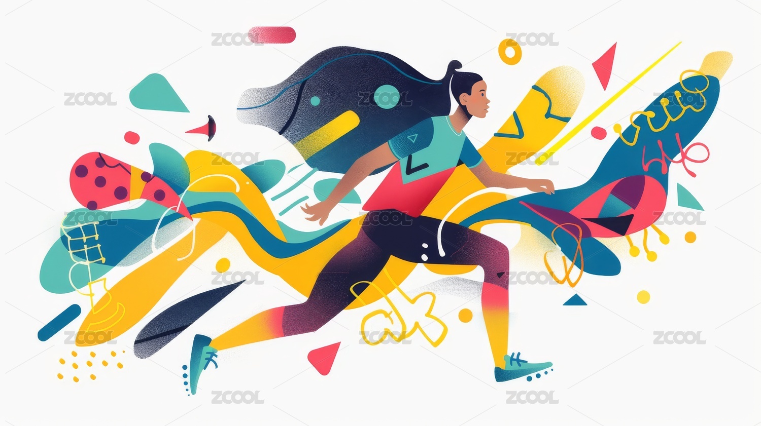 夏天人物清晨跑步运动健身健康减肥锻炼插画
