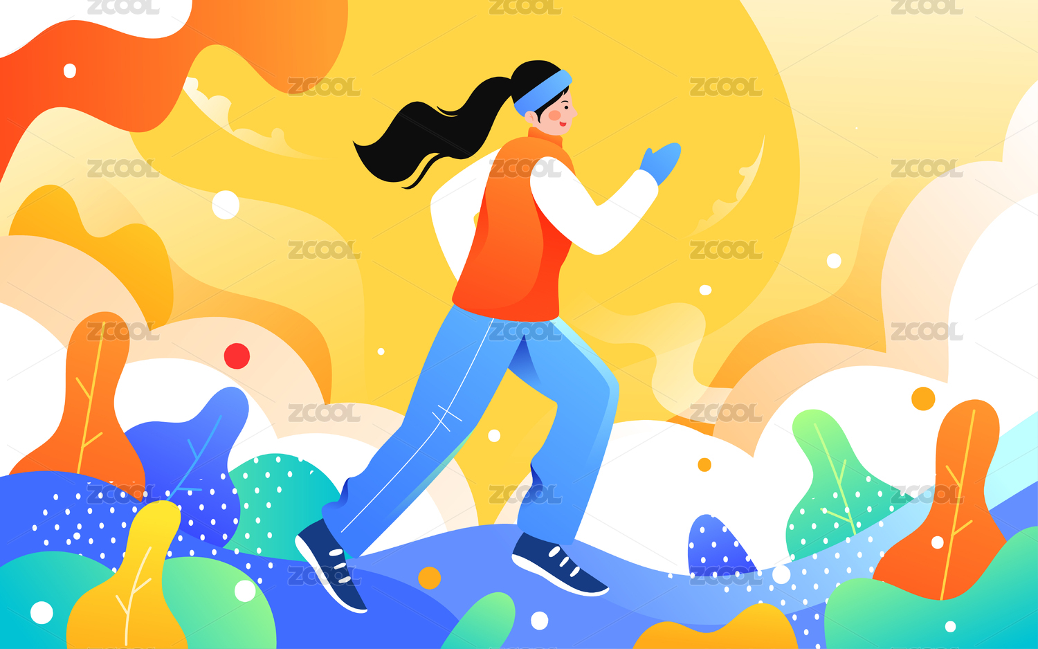 冬天人物跑步运动插画冬季减肥健身短跑海报