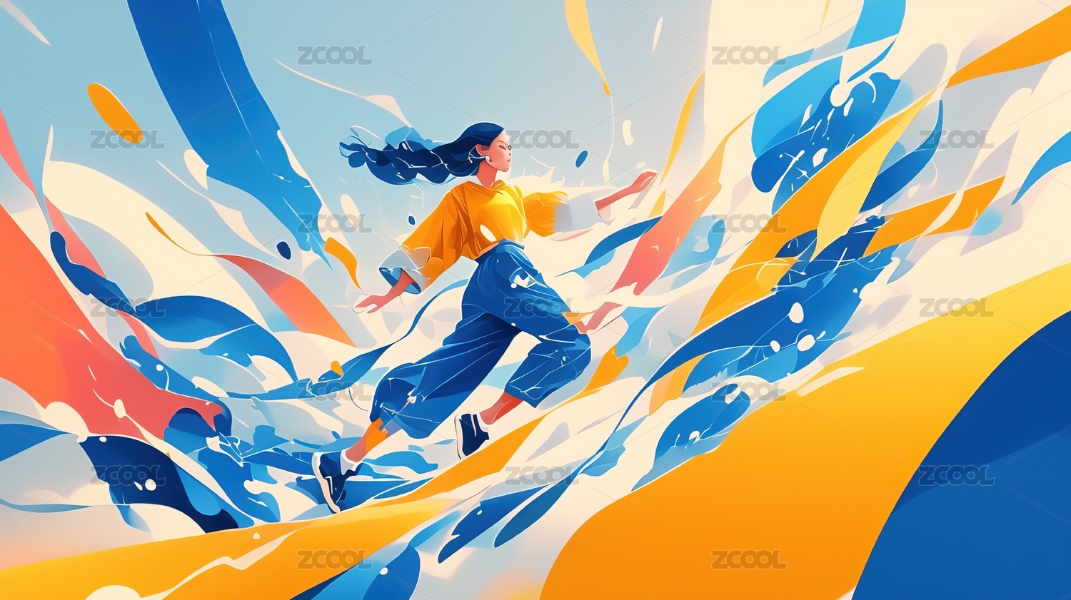 手绘卡通动感唯美的时尚女孩扁平化插画