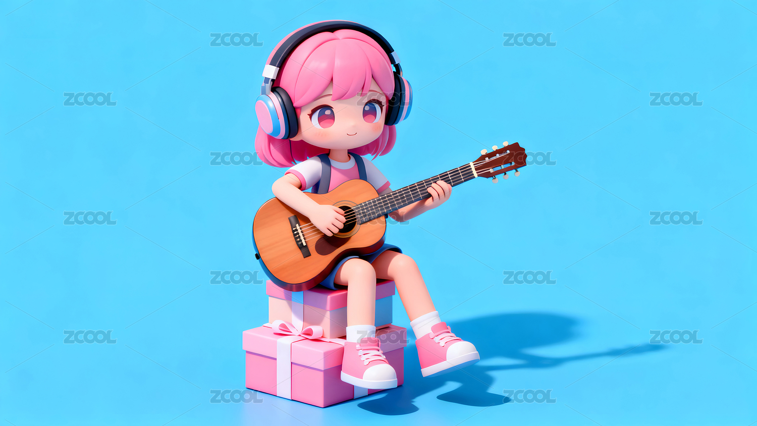 3D可爱女孩弹吉他