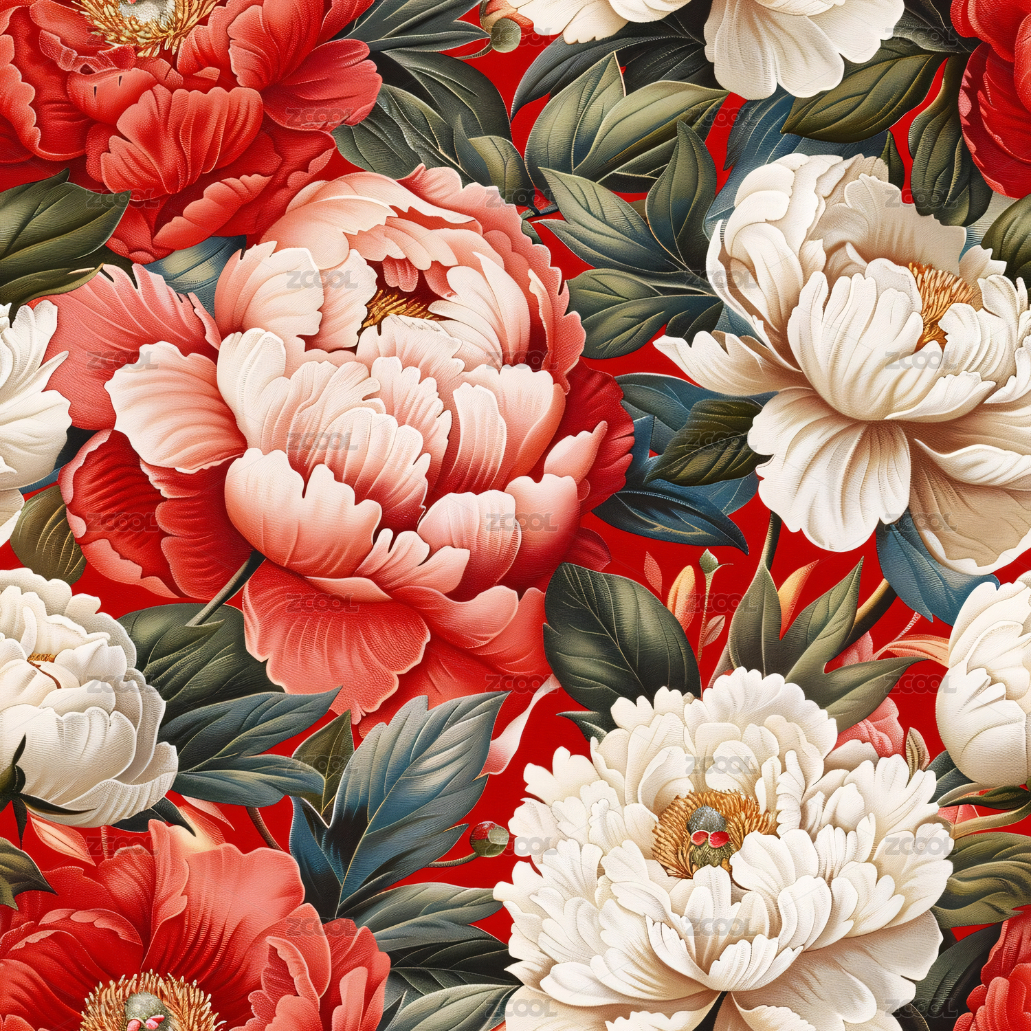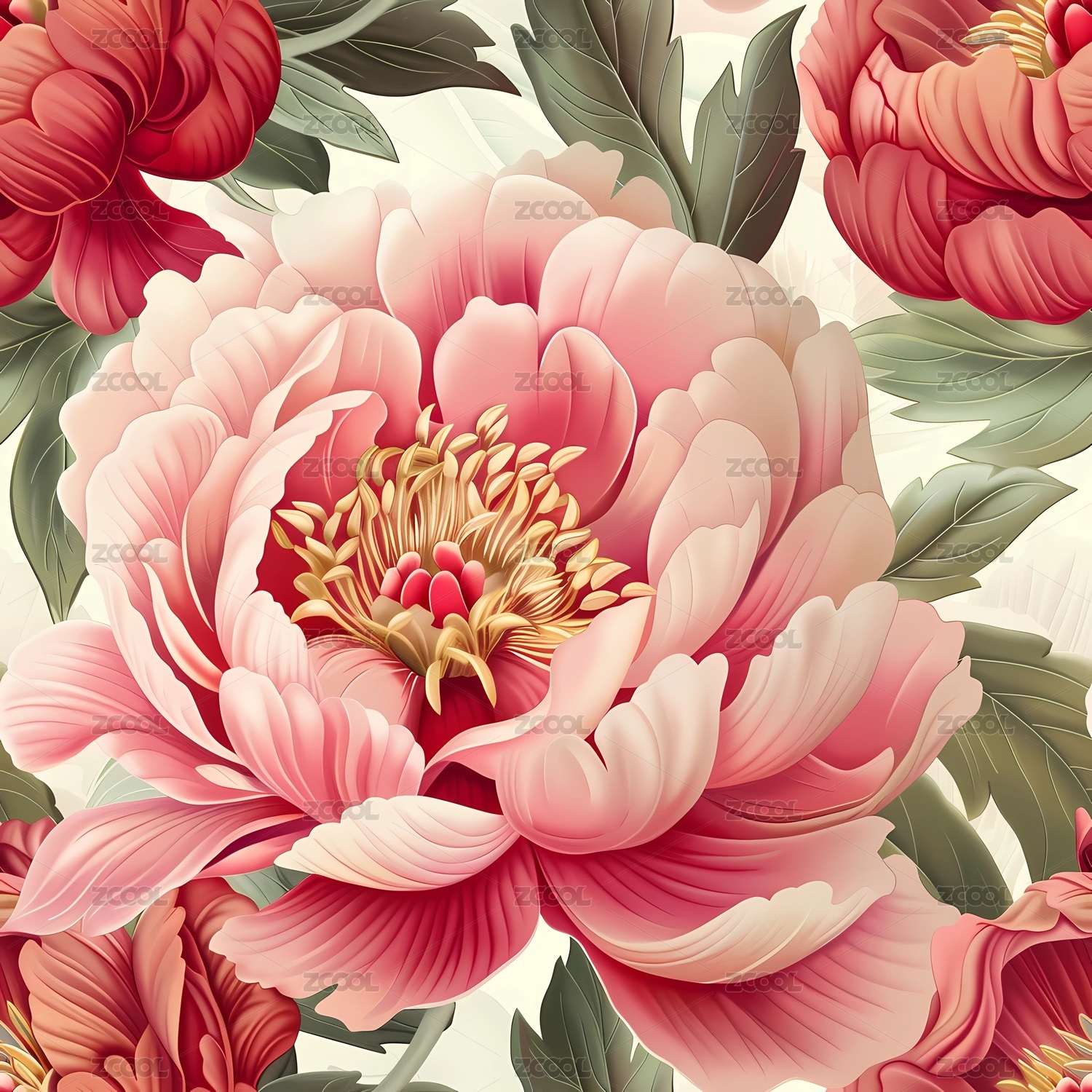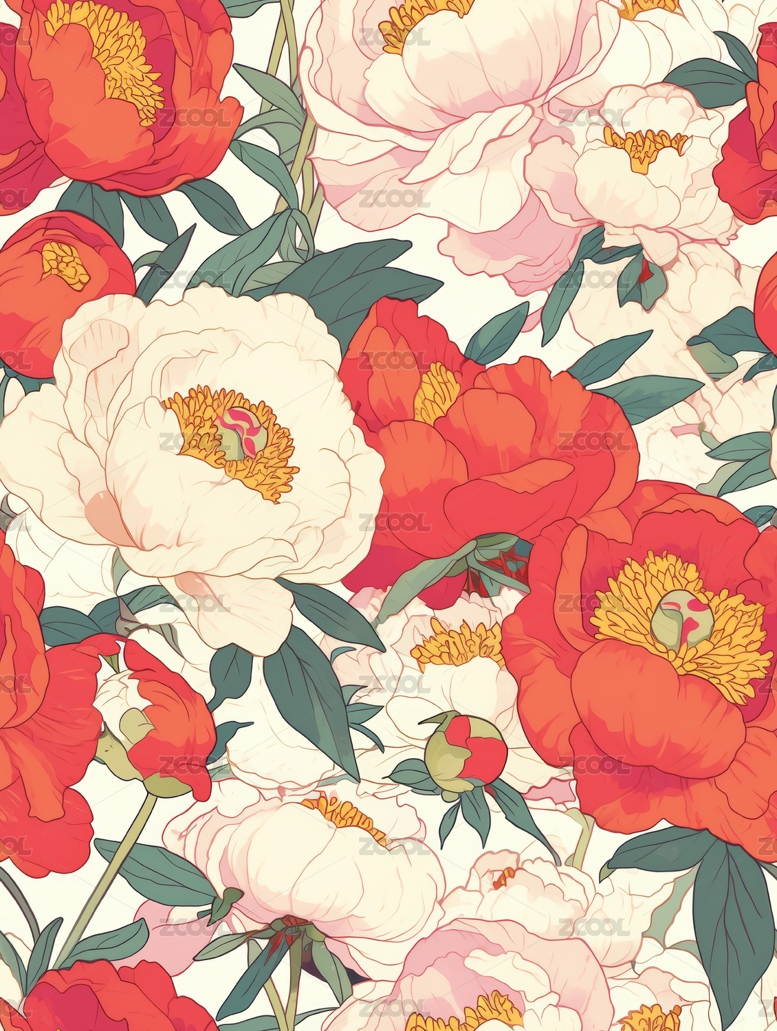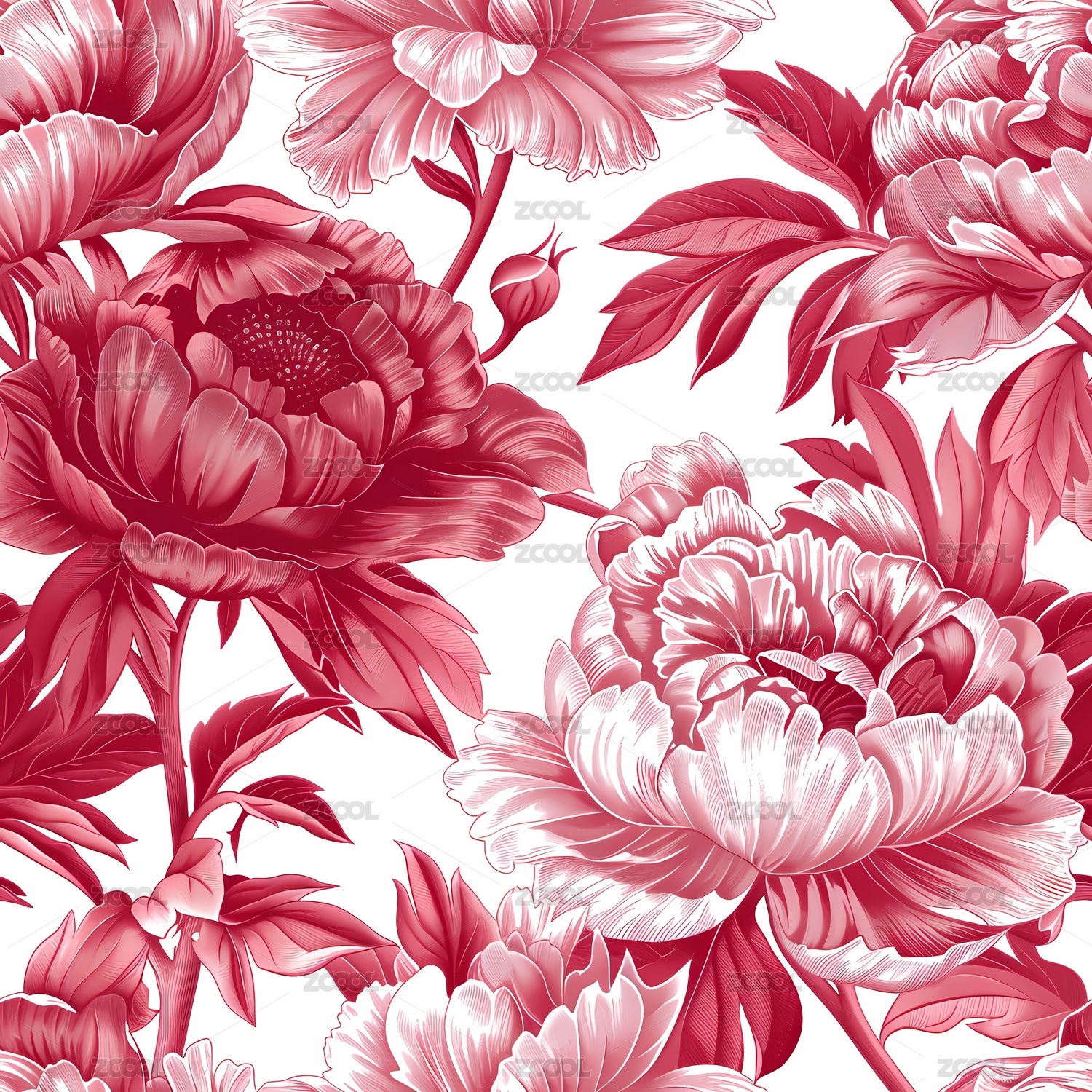 牡丹,花卉,花朵,红色,粉色,线条,绘画,插画,艺术,图案