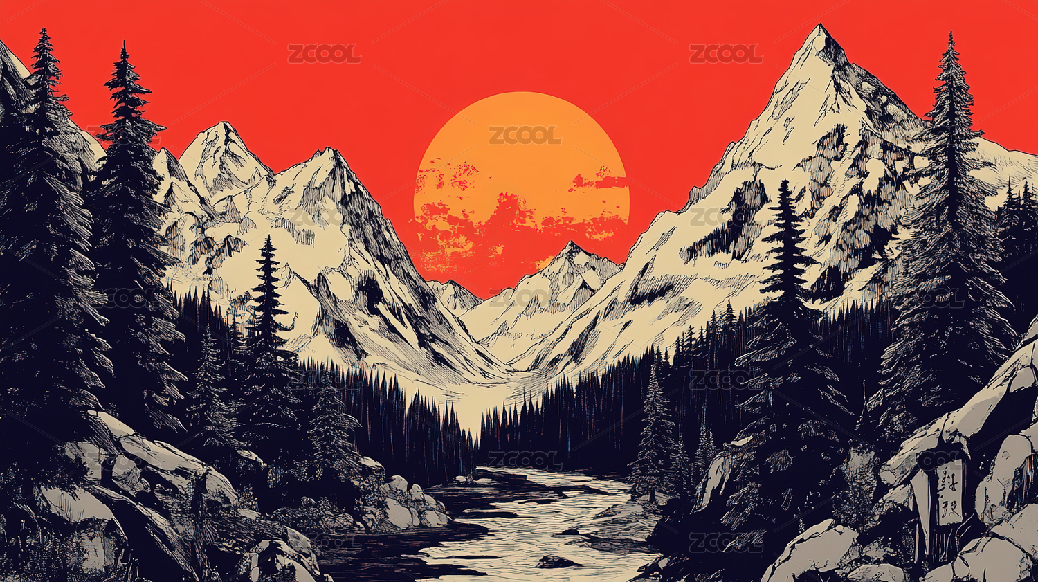 几何风格山水插画