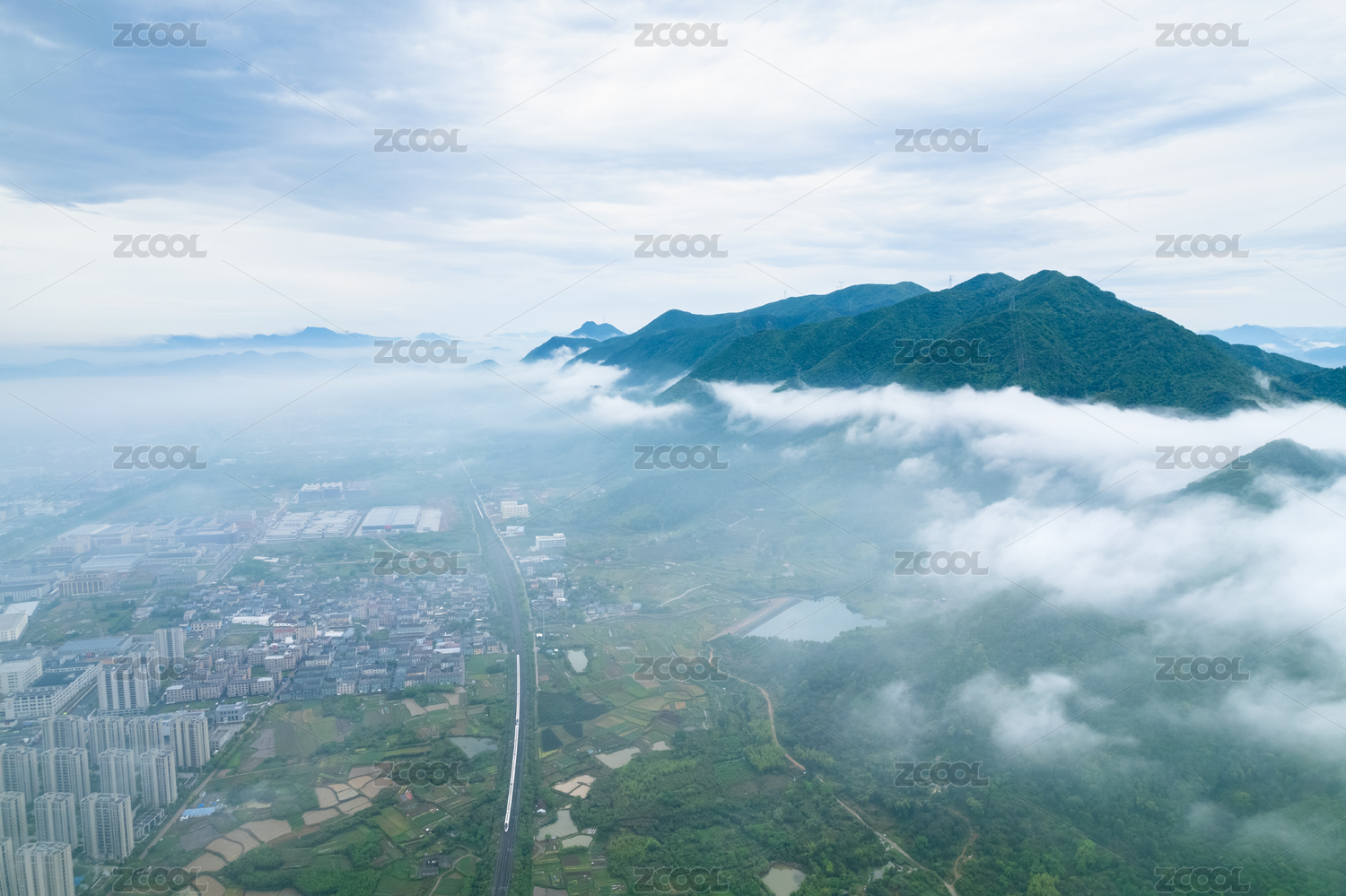 宁波宁海西店中国城镇乡村春天雨后云海高铁