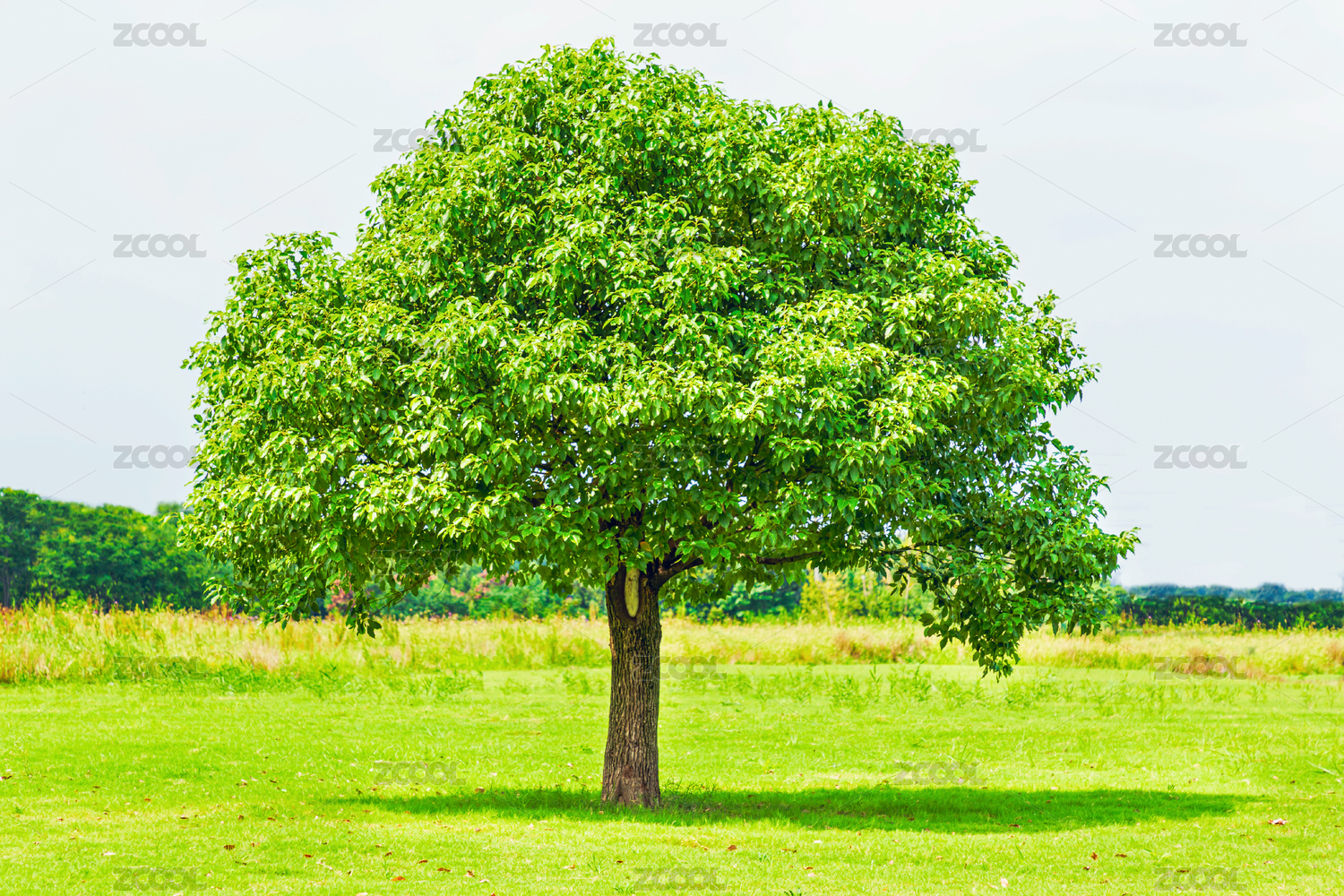 阳光下一个草地上的香樟树