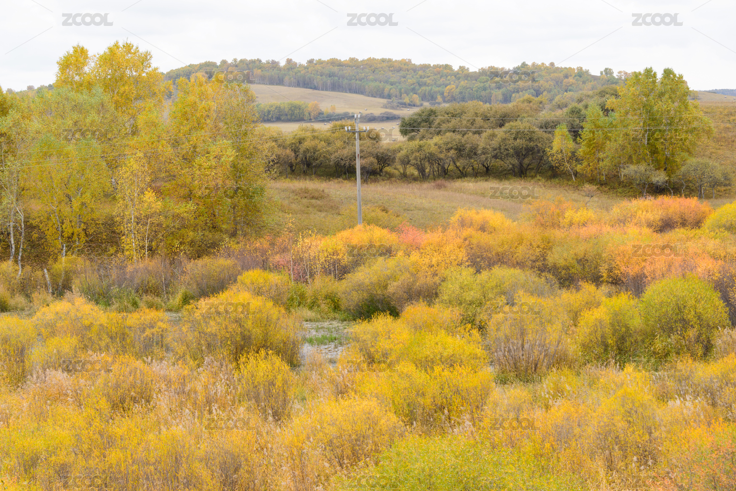 内蒙古阿尔山秋天里金黄色森林树木风景