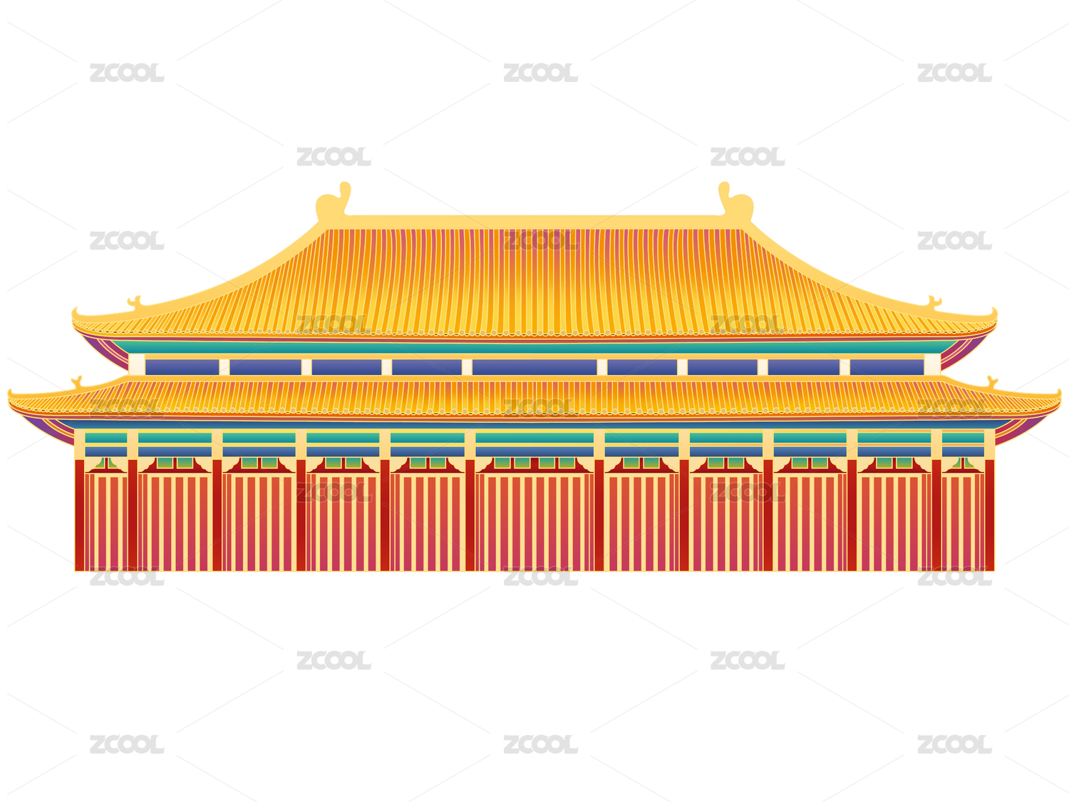 中国风古建筑矢量插画素材