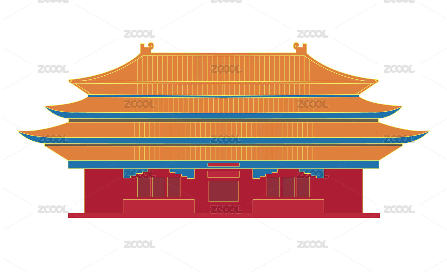 橙色简易故宫大殿卡通插画