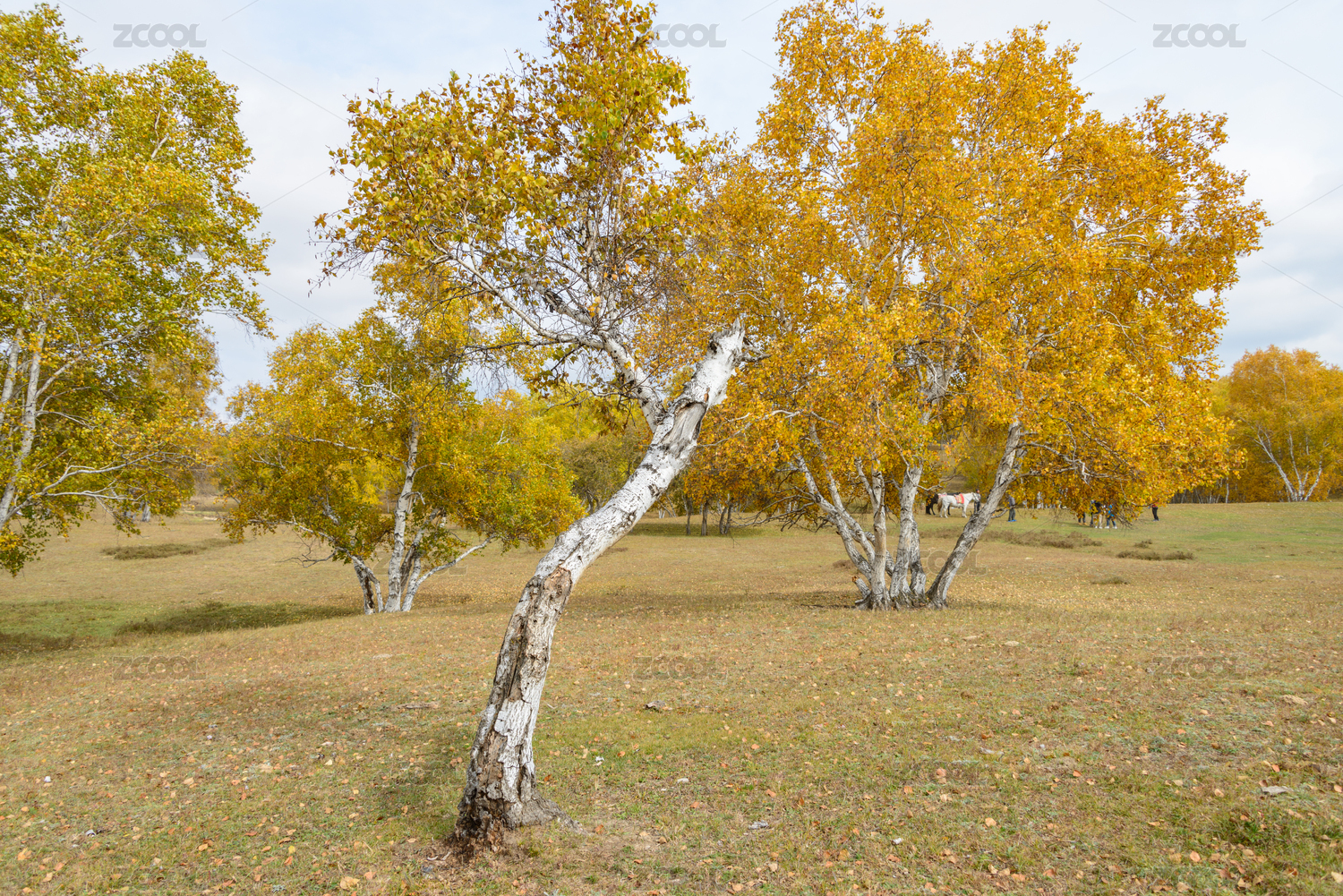 秋天内蒙古乌兰布统坝上草原的白桦树白桦林