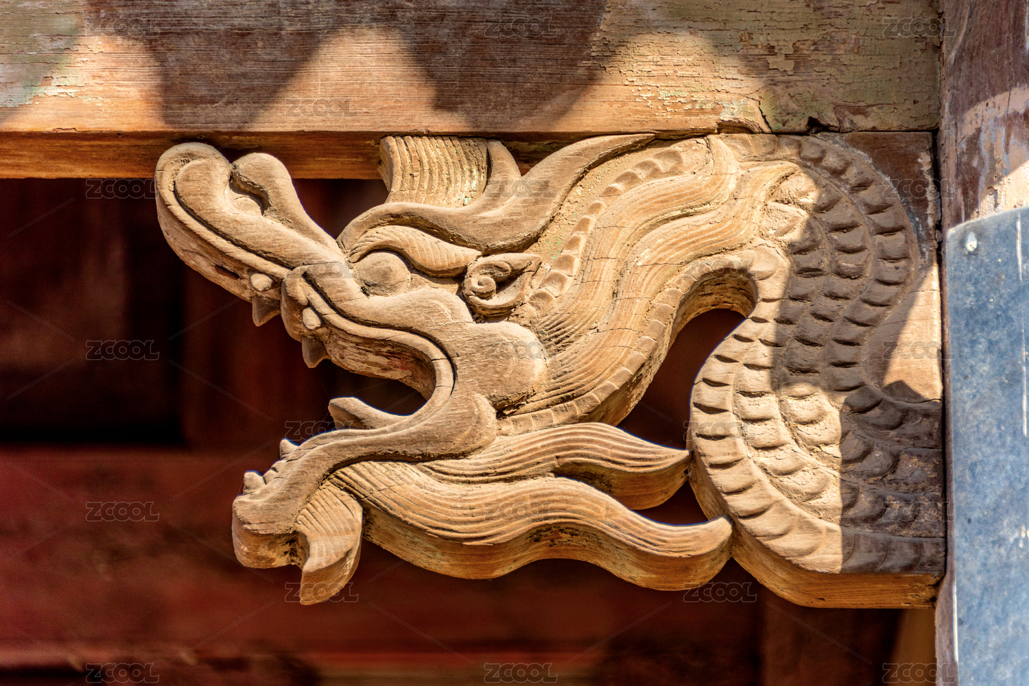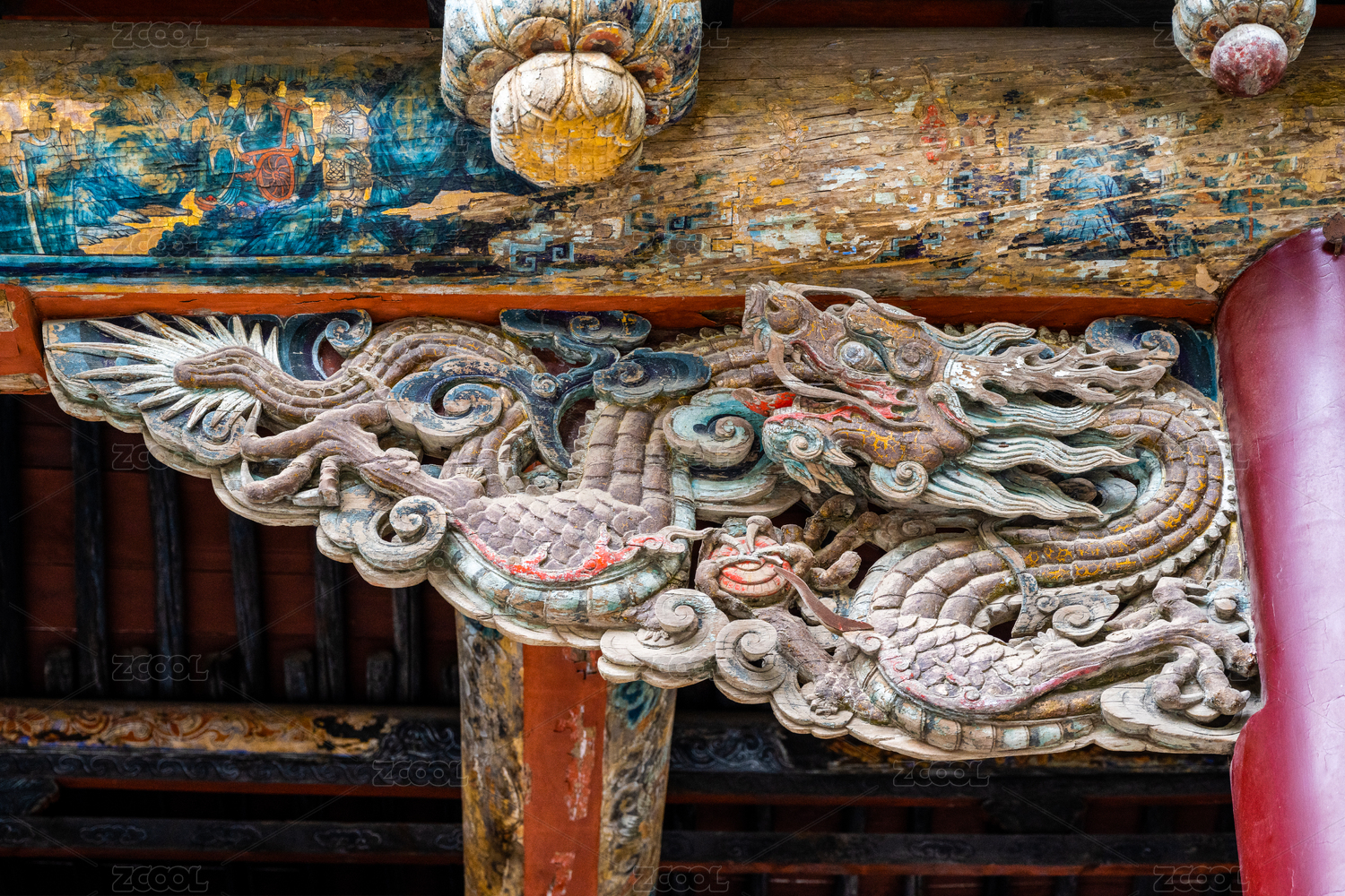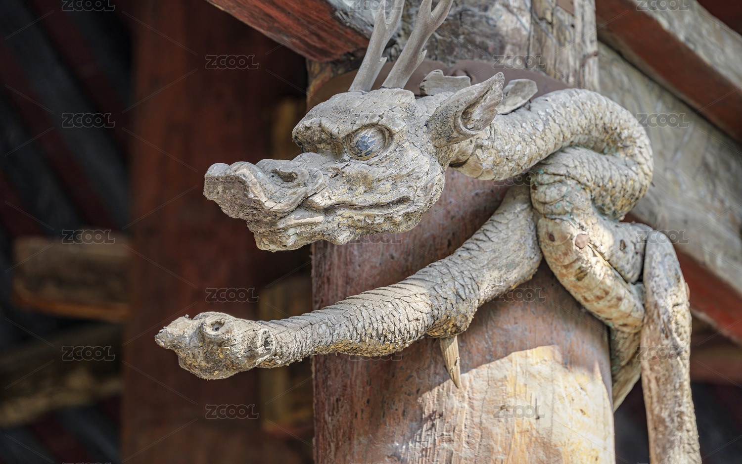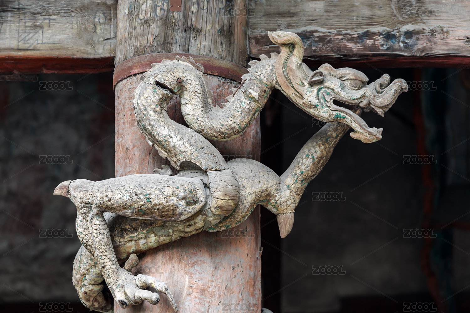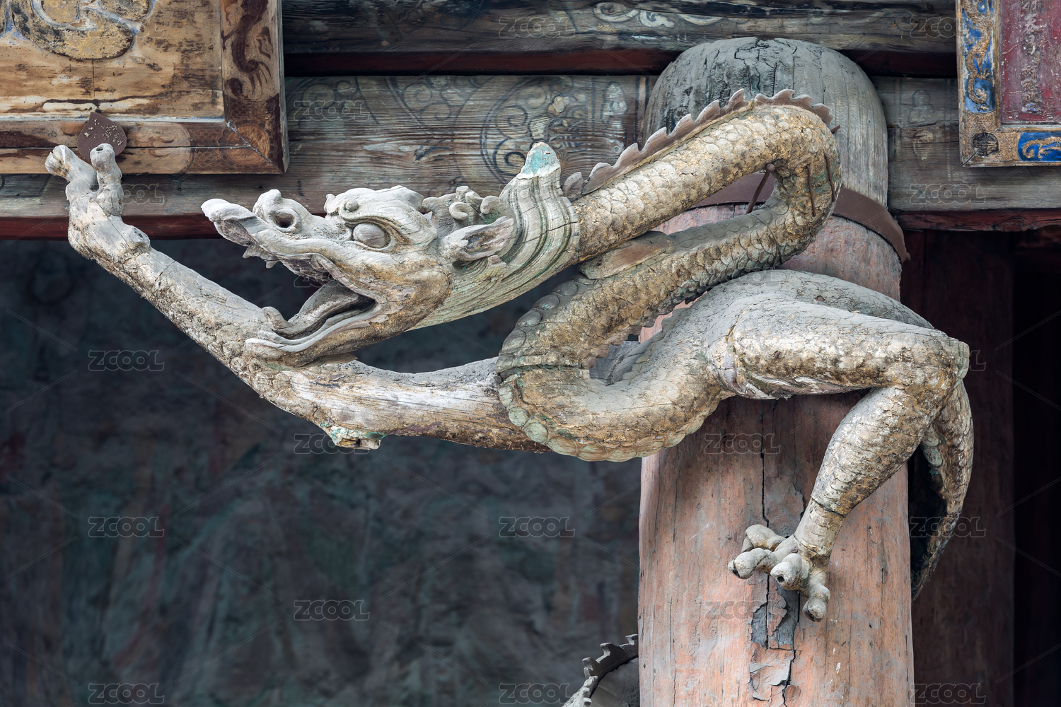 中国山西太原晋祠木雕盘龙