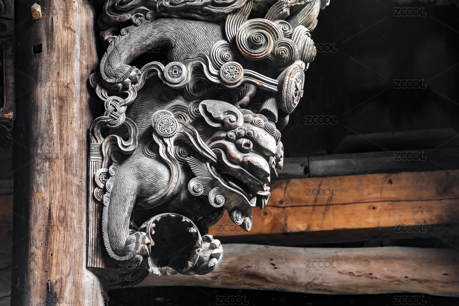 中式建筑 精美狮子浮雕