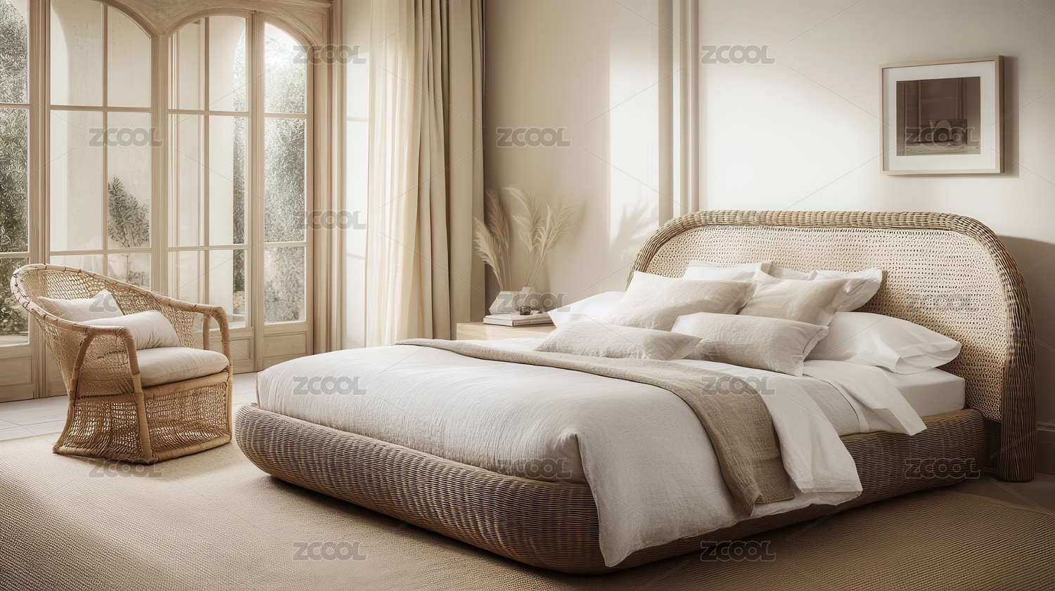 卧室,舒适,藤编,床,家居,家具,室内设计,简约,现代,自然