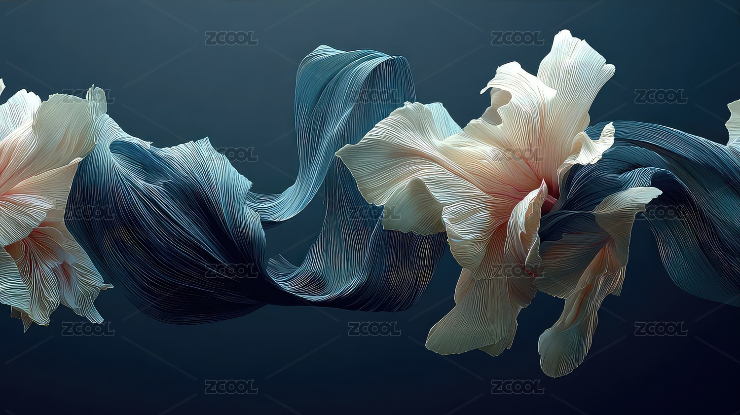 花朵与飘带的梦幻组合营造艺术氛围