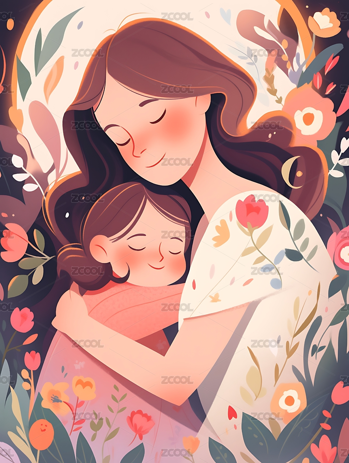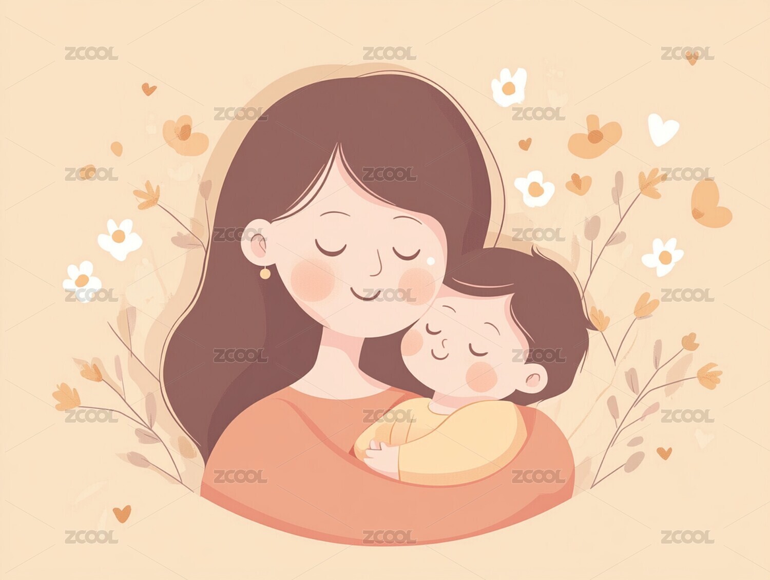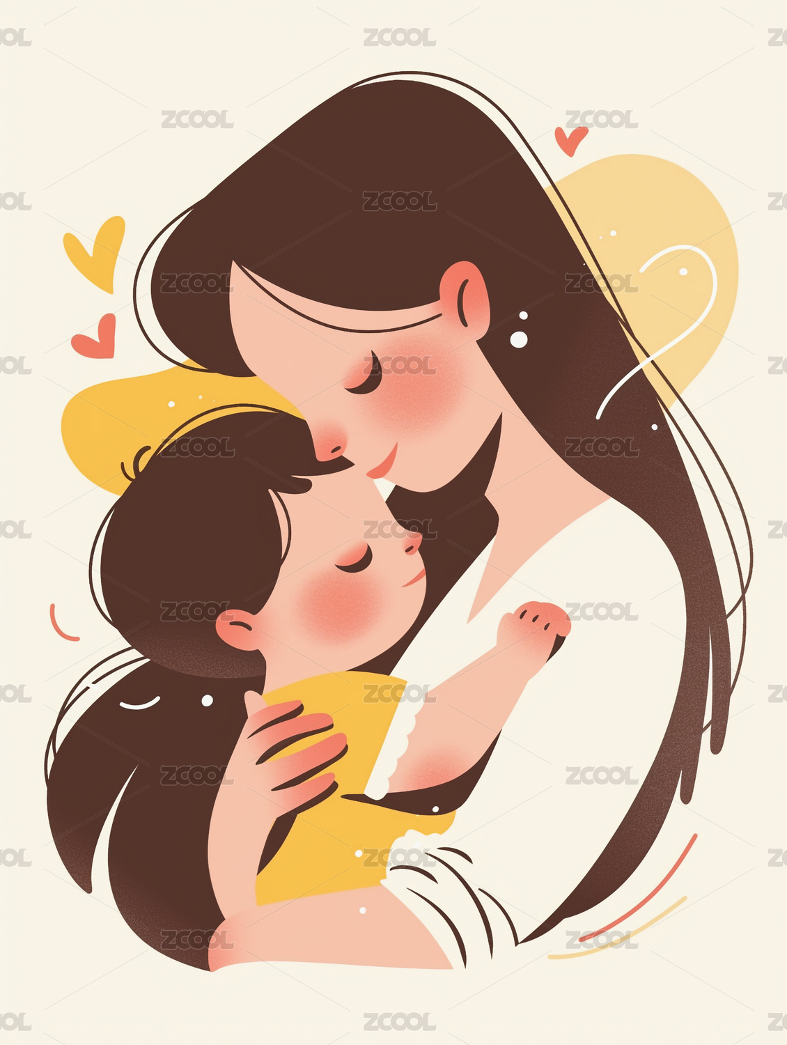 母爱母亲抱着婴儿爱的传递插画扁平风