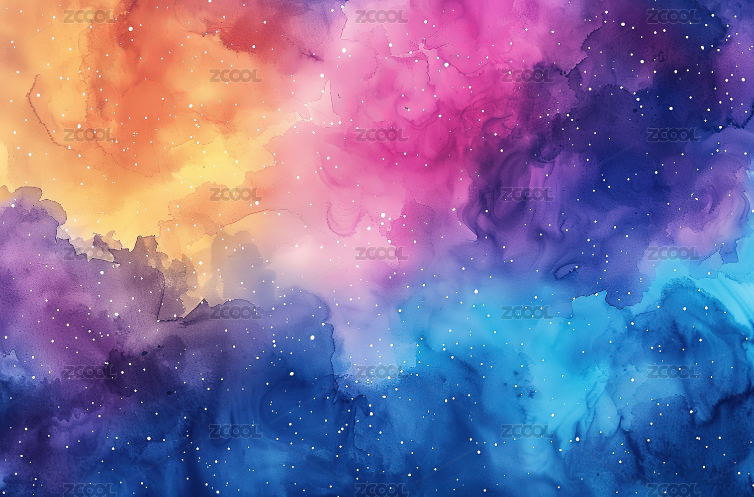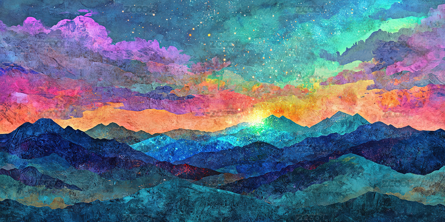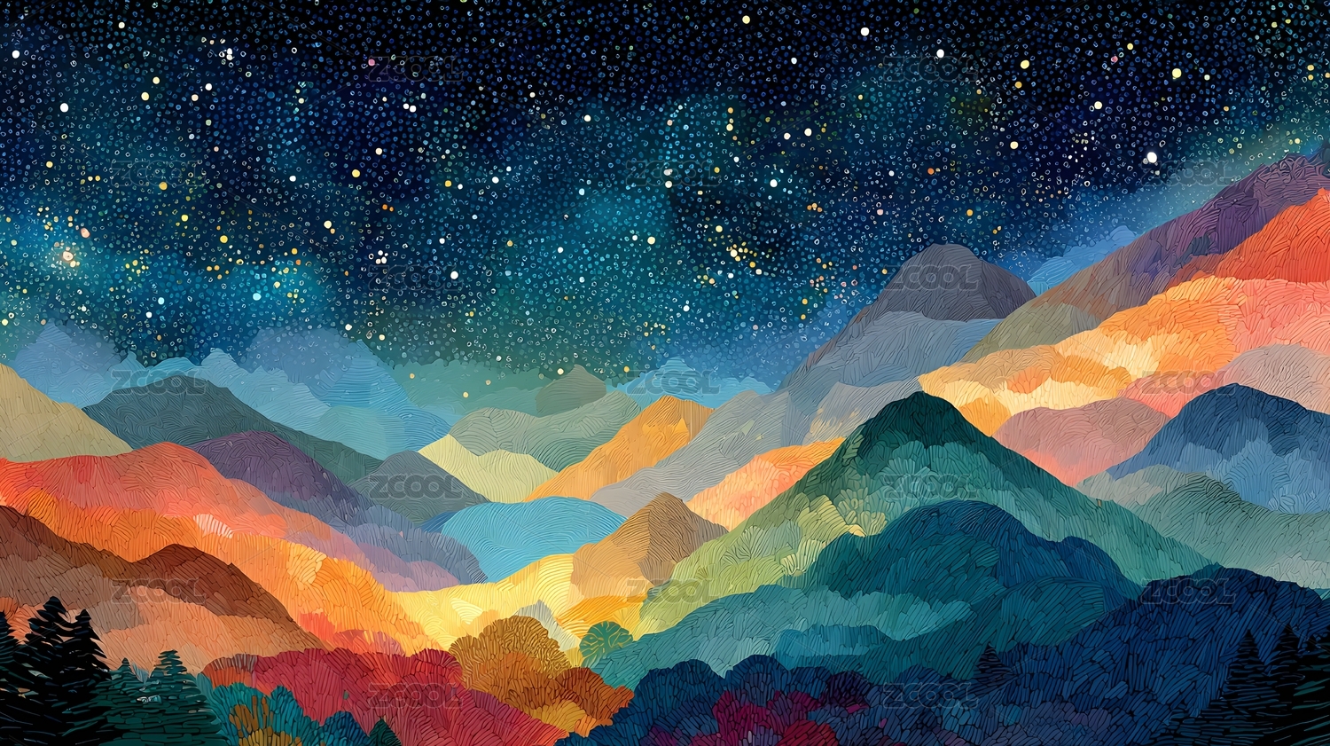 彩色迷幻夜晚星星插画抽象装饰画背景