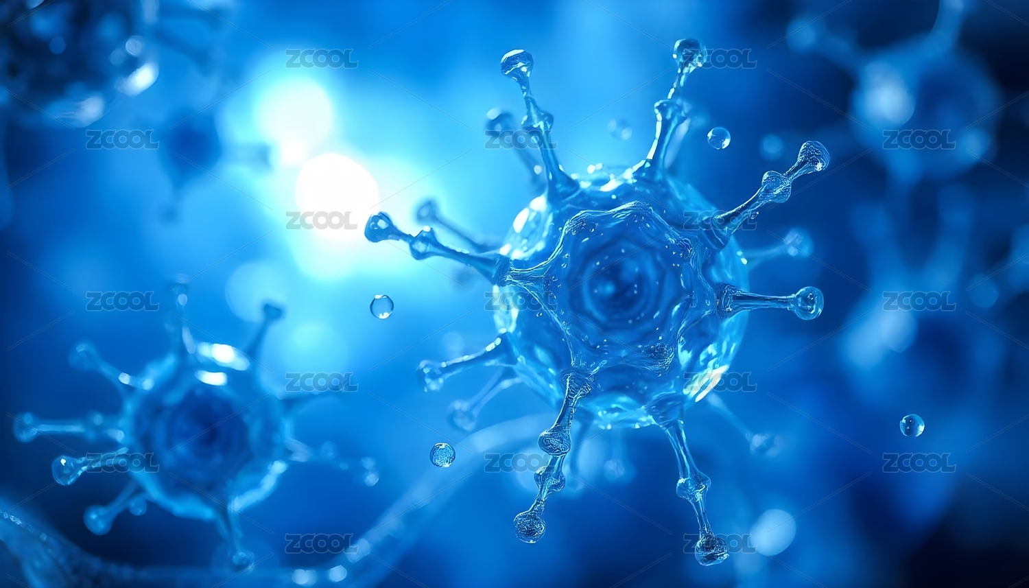 科技感DNA双螺旋结构和病毒3D渲染背景