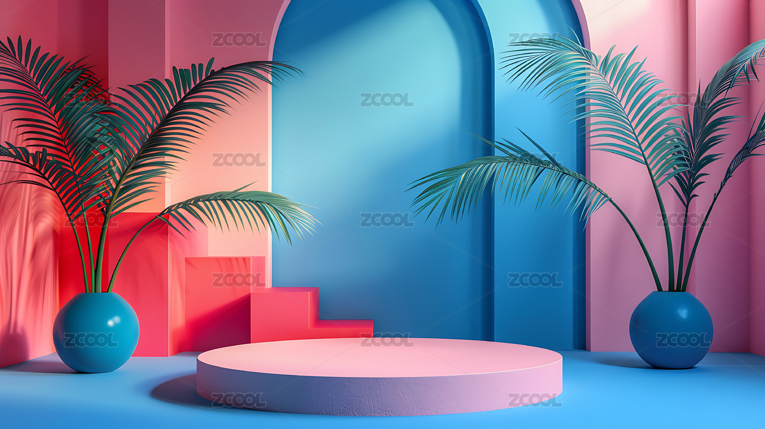 梦幻紫蓝热带植物台阶