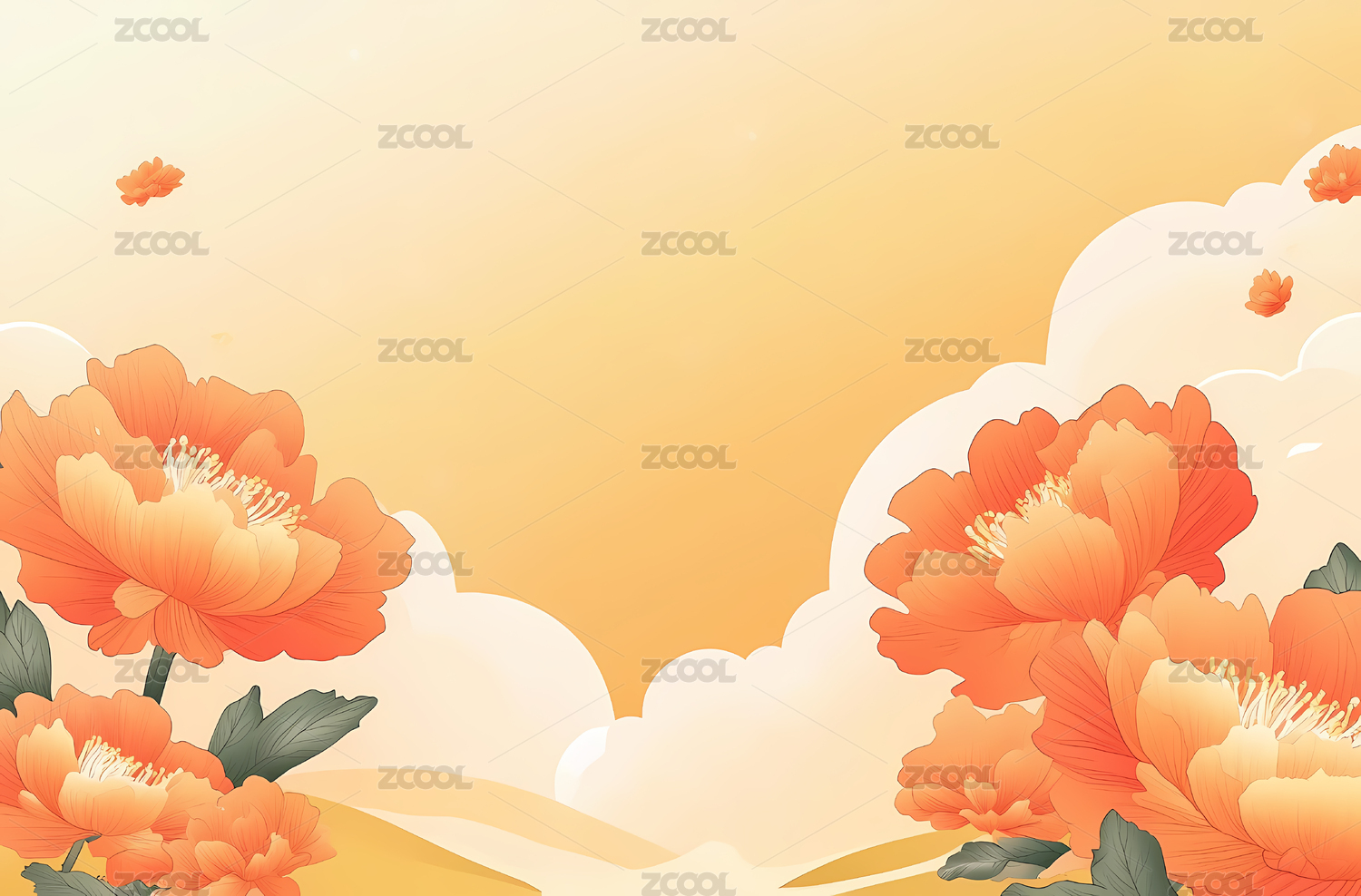 无人,植物,春天,花,花簇,插画,盛开,国风,新中式风格,中国文化