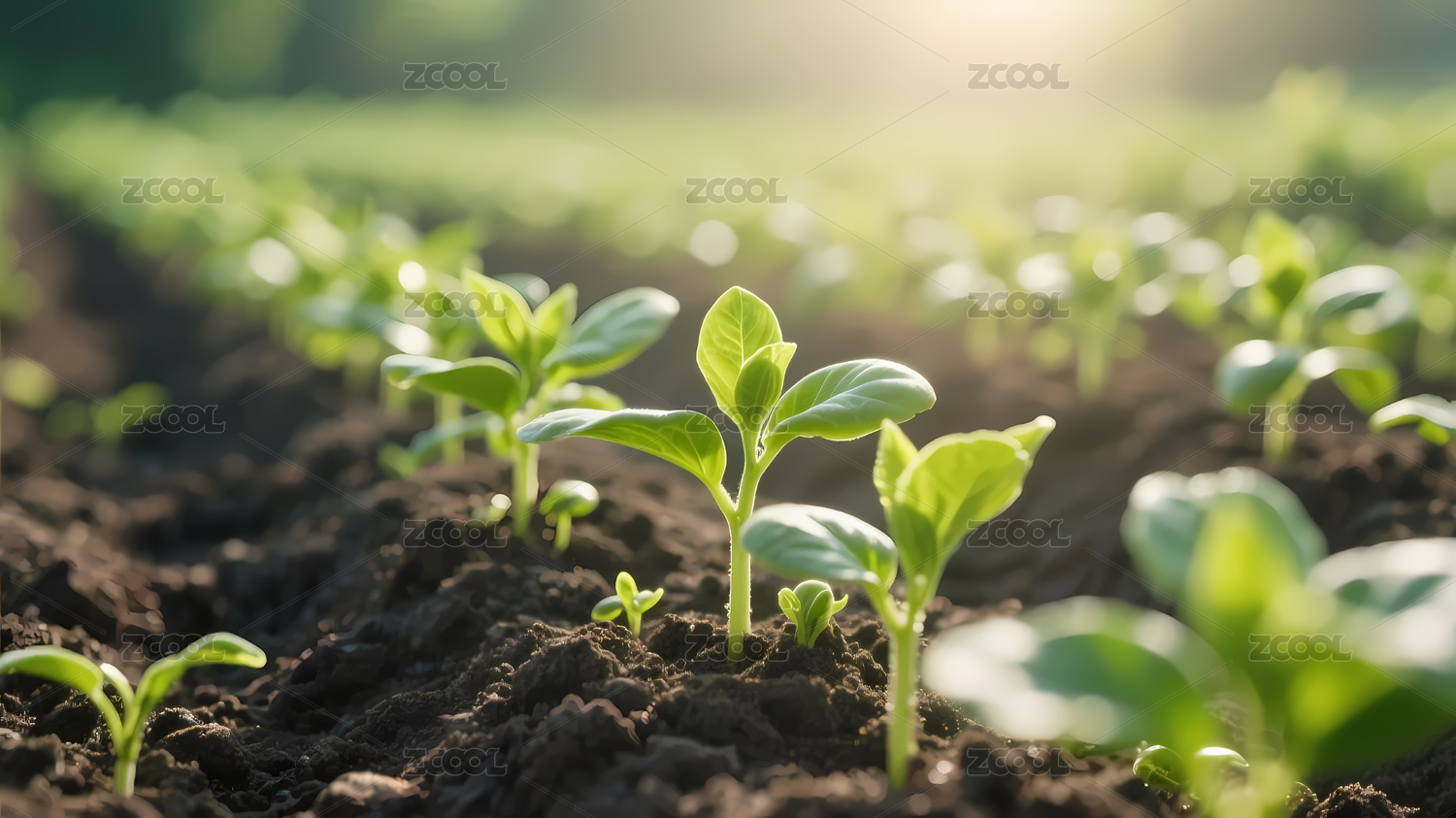 一株幼苗在阳光的照耀下从土壤中生长出来