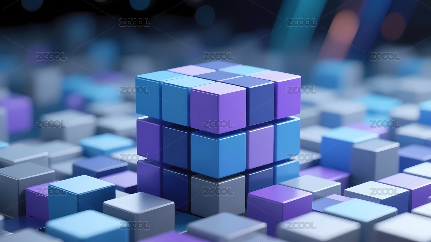 冷色调几何立方体