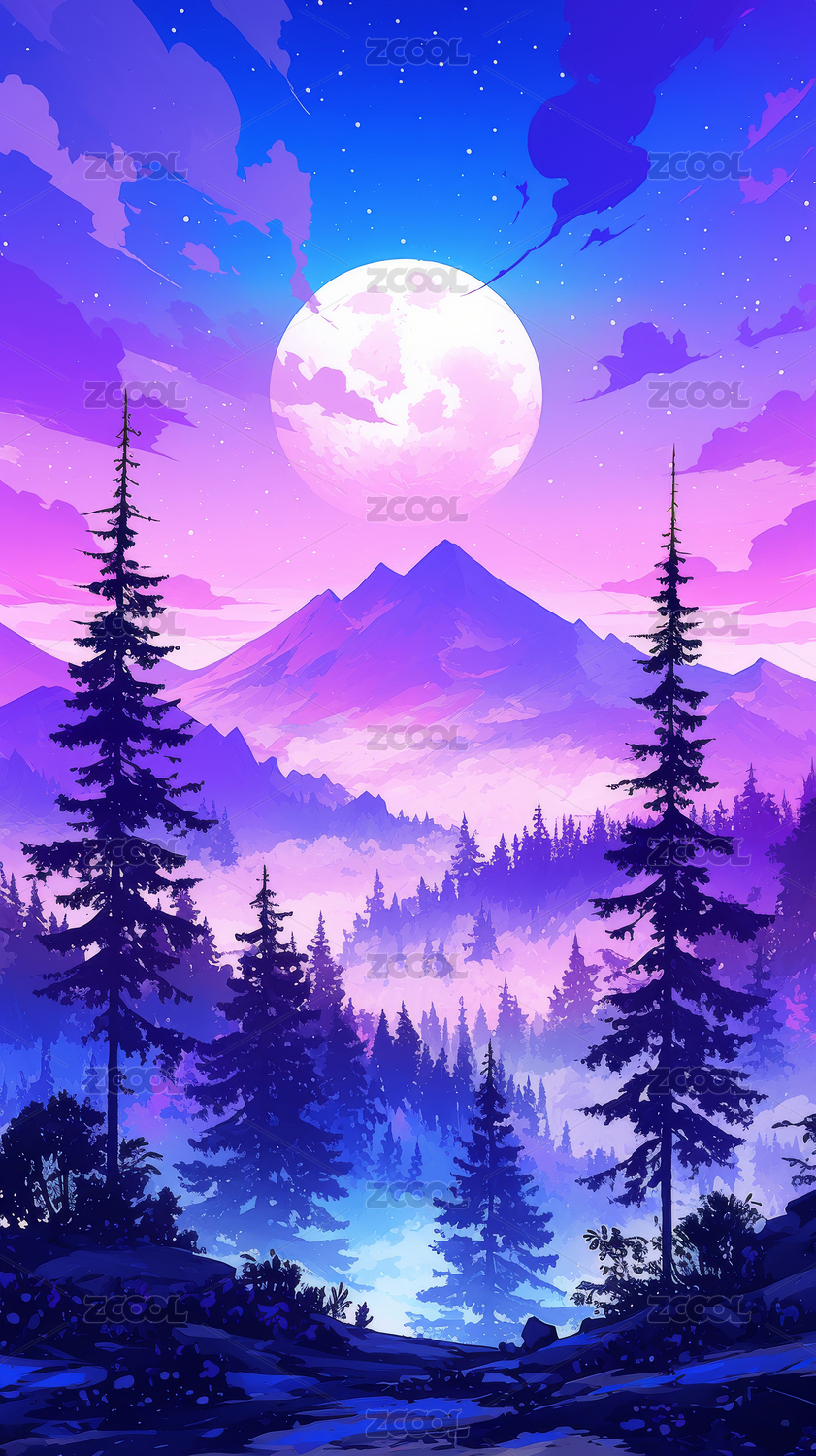 梦幻紫罗兰山林月夜