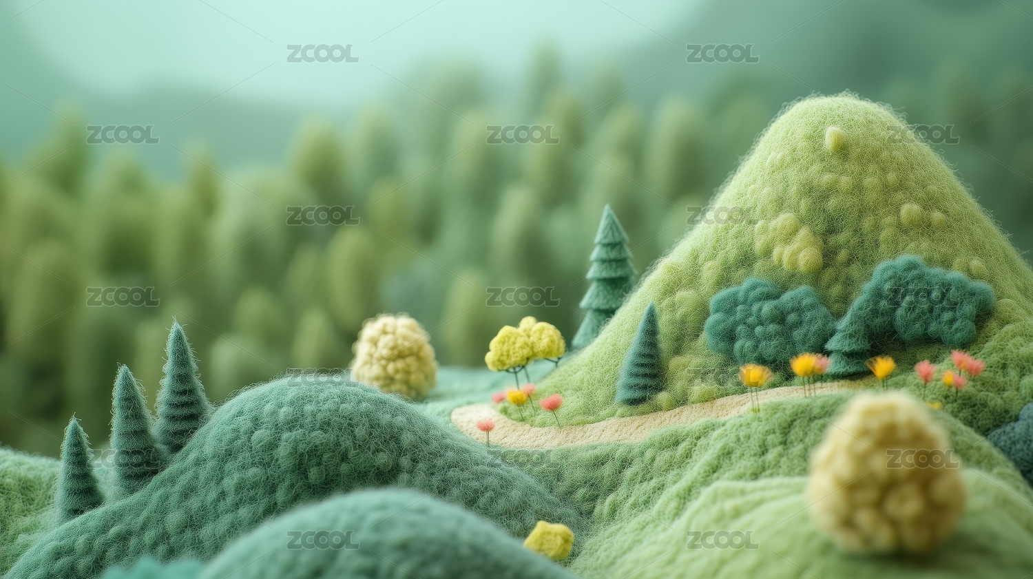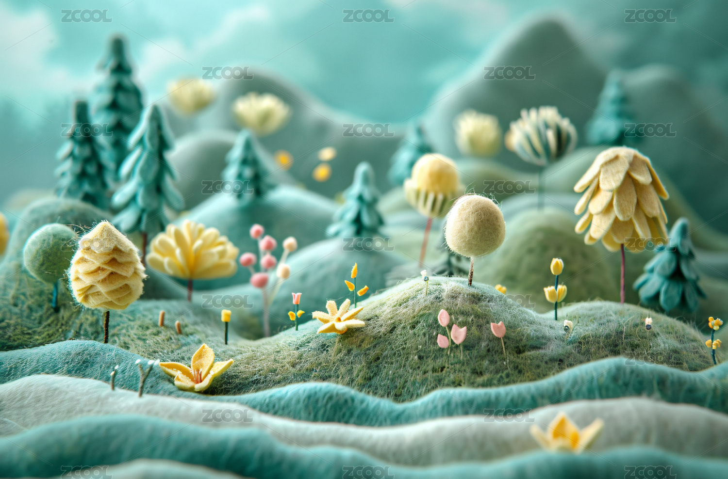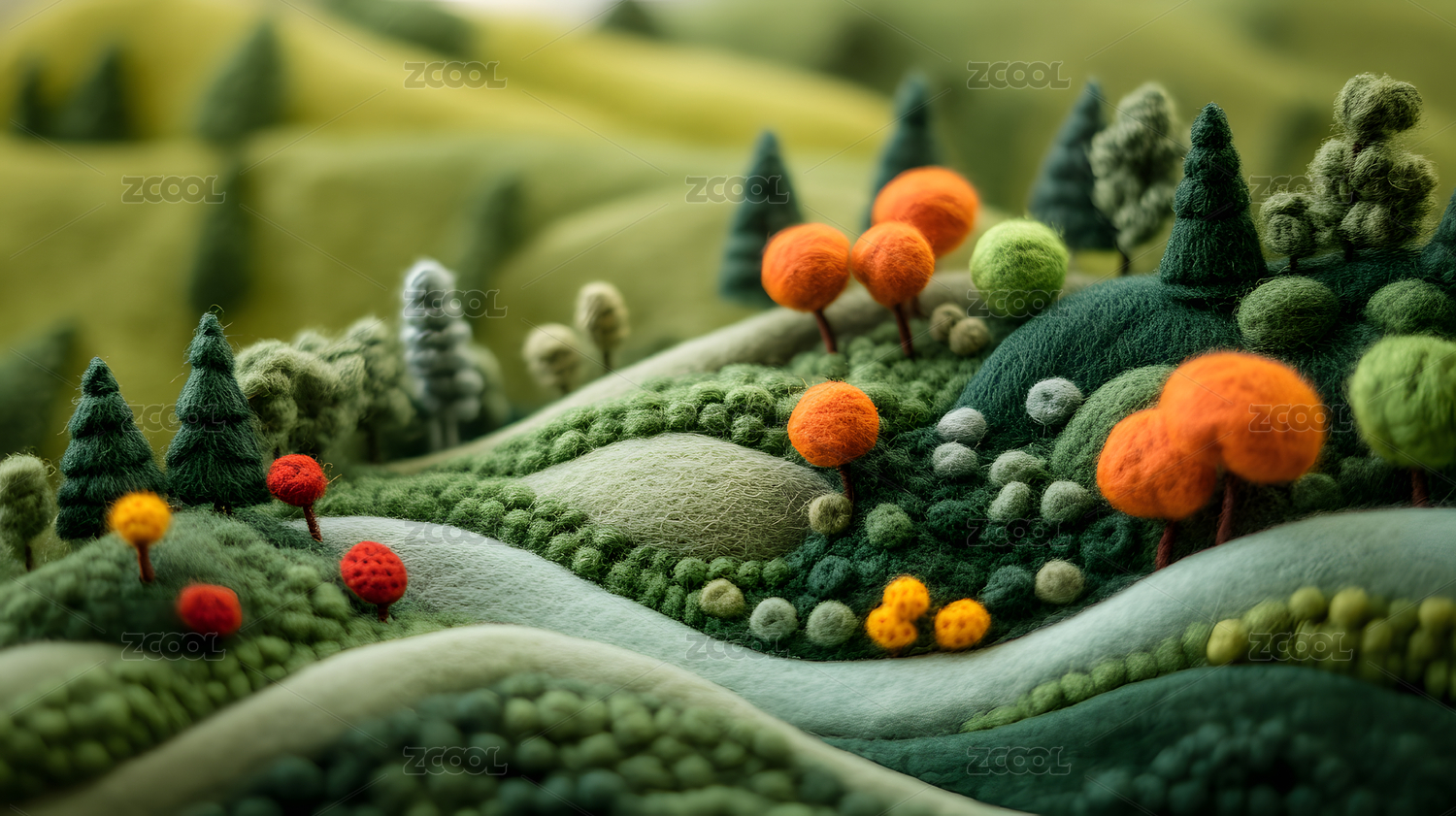 童话羊毛毡毛绒山间城堡3D卡通立体插画