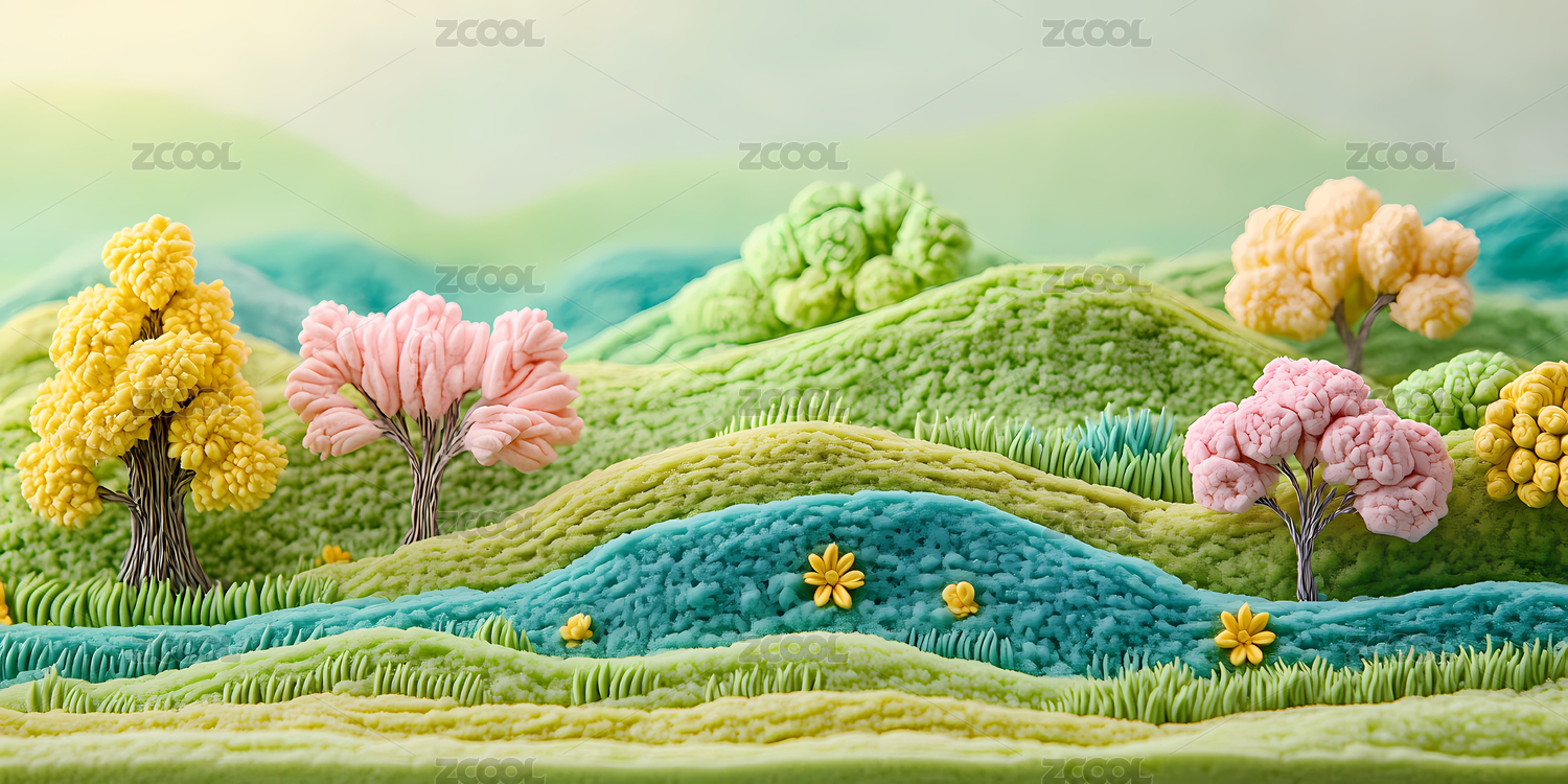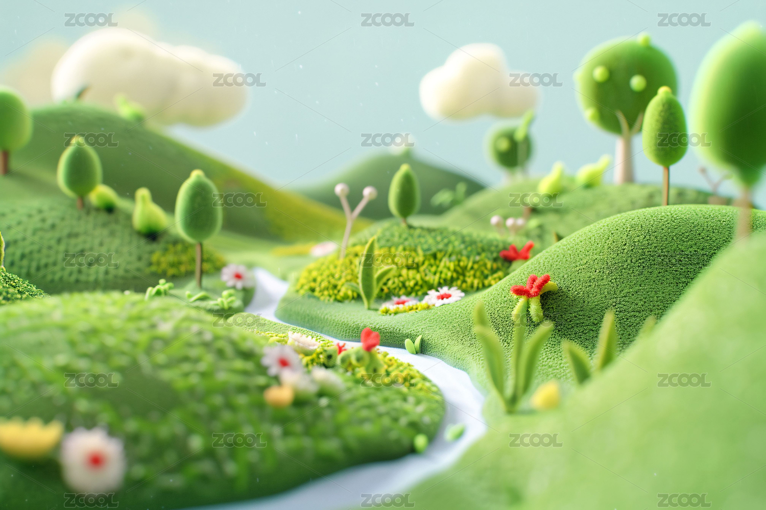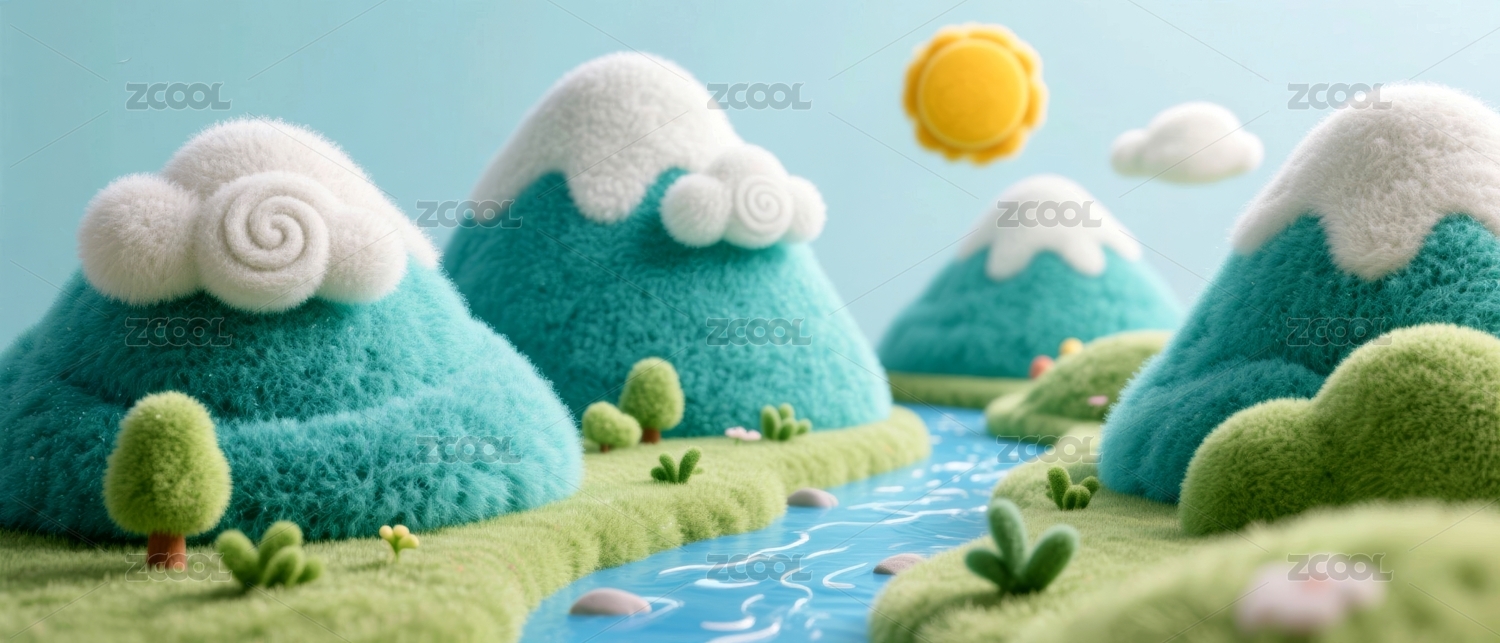 童话羊毛毡毛绒山间城堡3D卡通立体插画