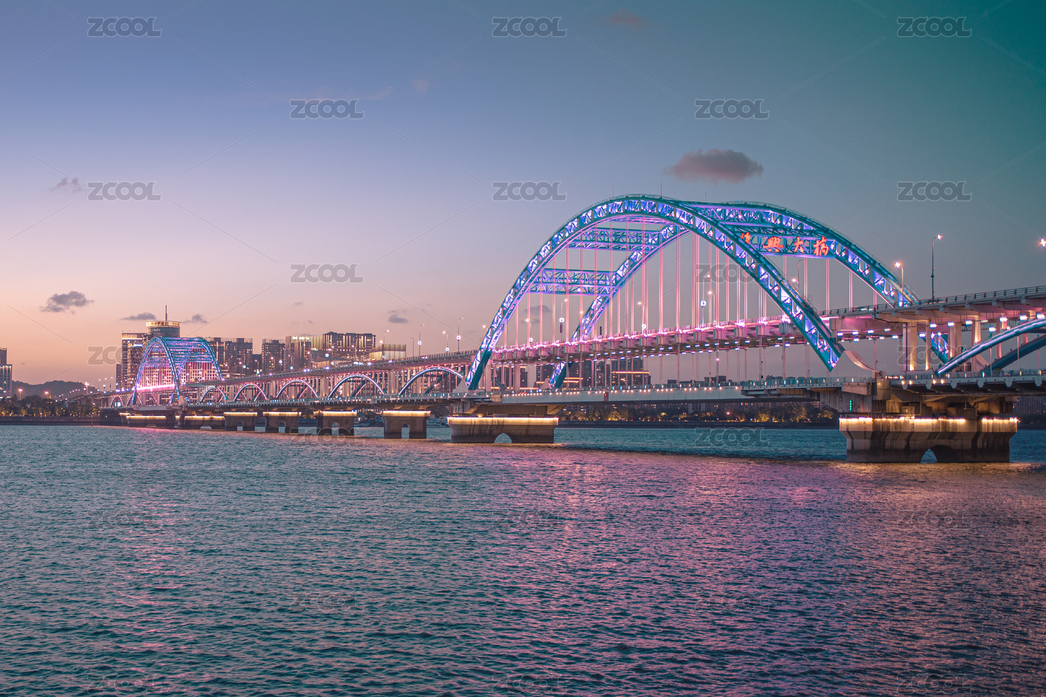 杭州,钱塘江,夜景,灯火,灯光,钱江四桥,复兴大桥,大桥,倒影,双层桥