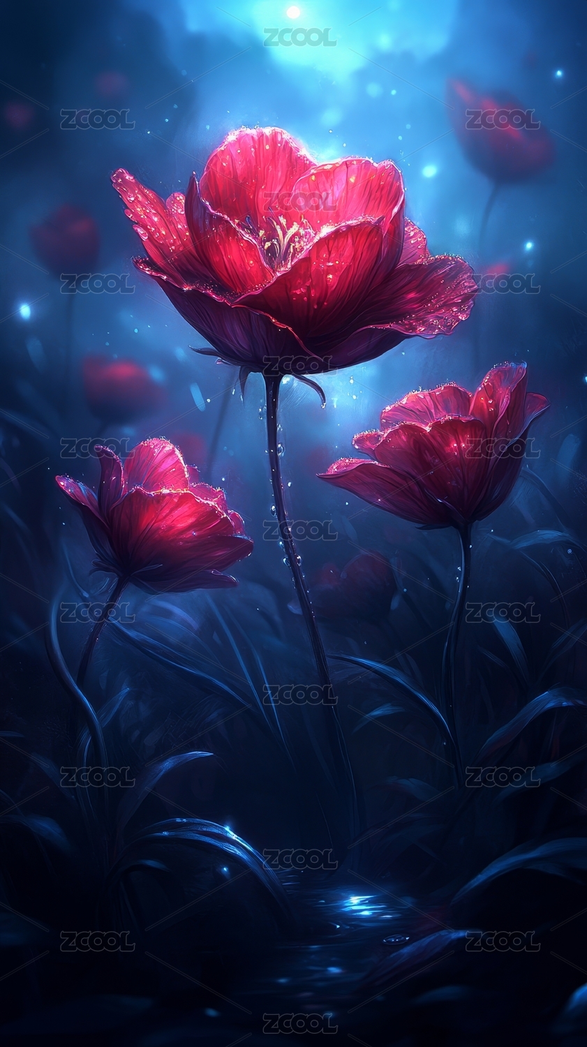 红色玫瑰深黑色高光写实高分辨率水彩绘画