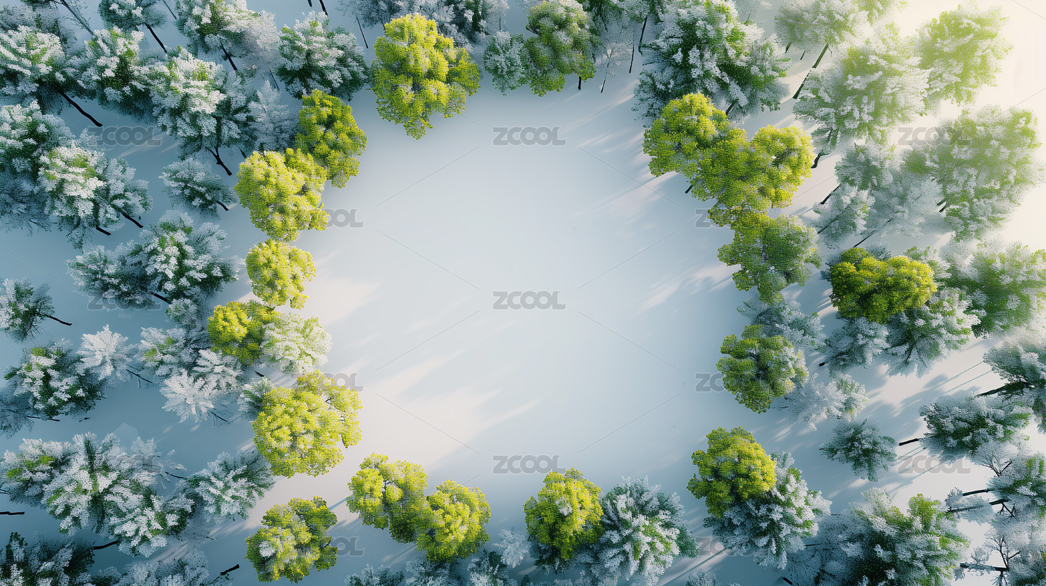 绿树围成的一个圆在干净背景上